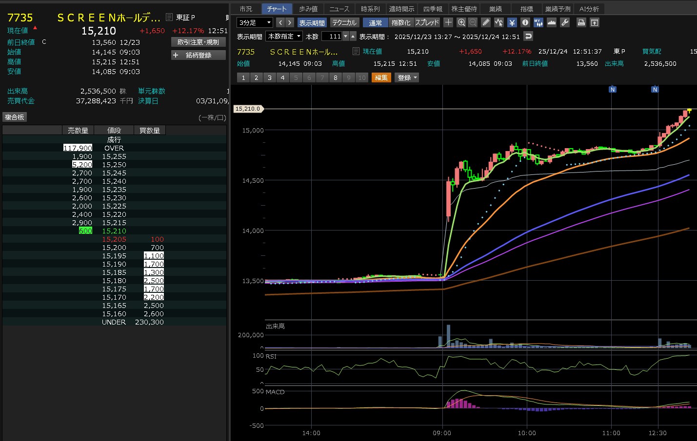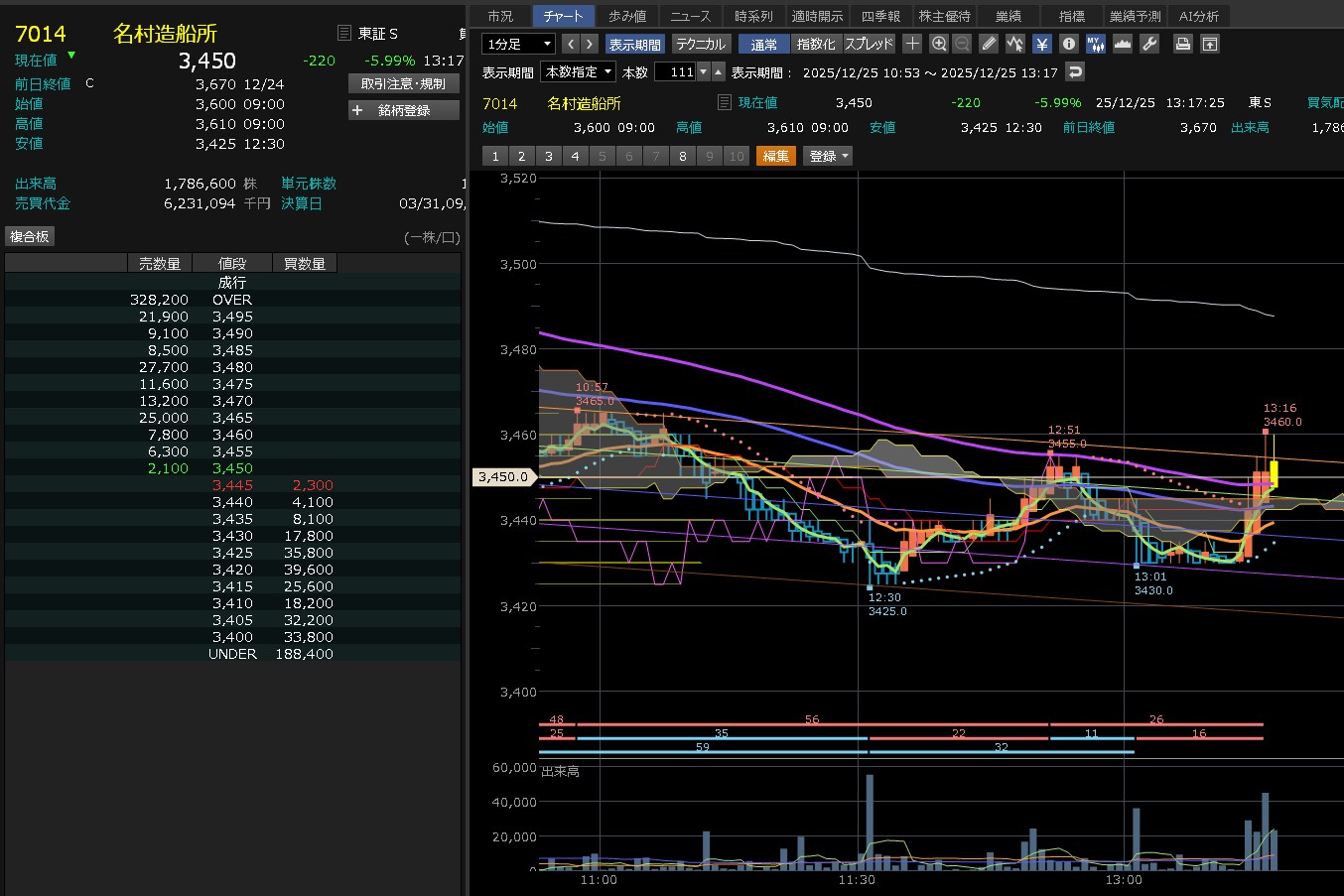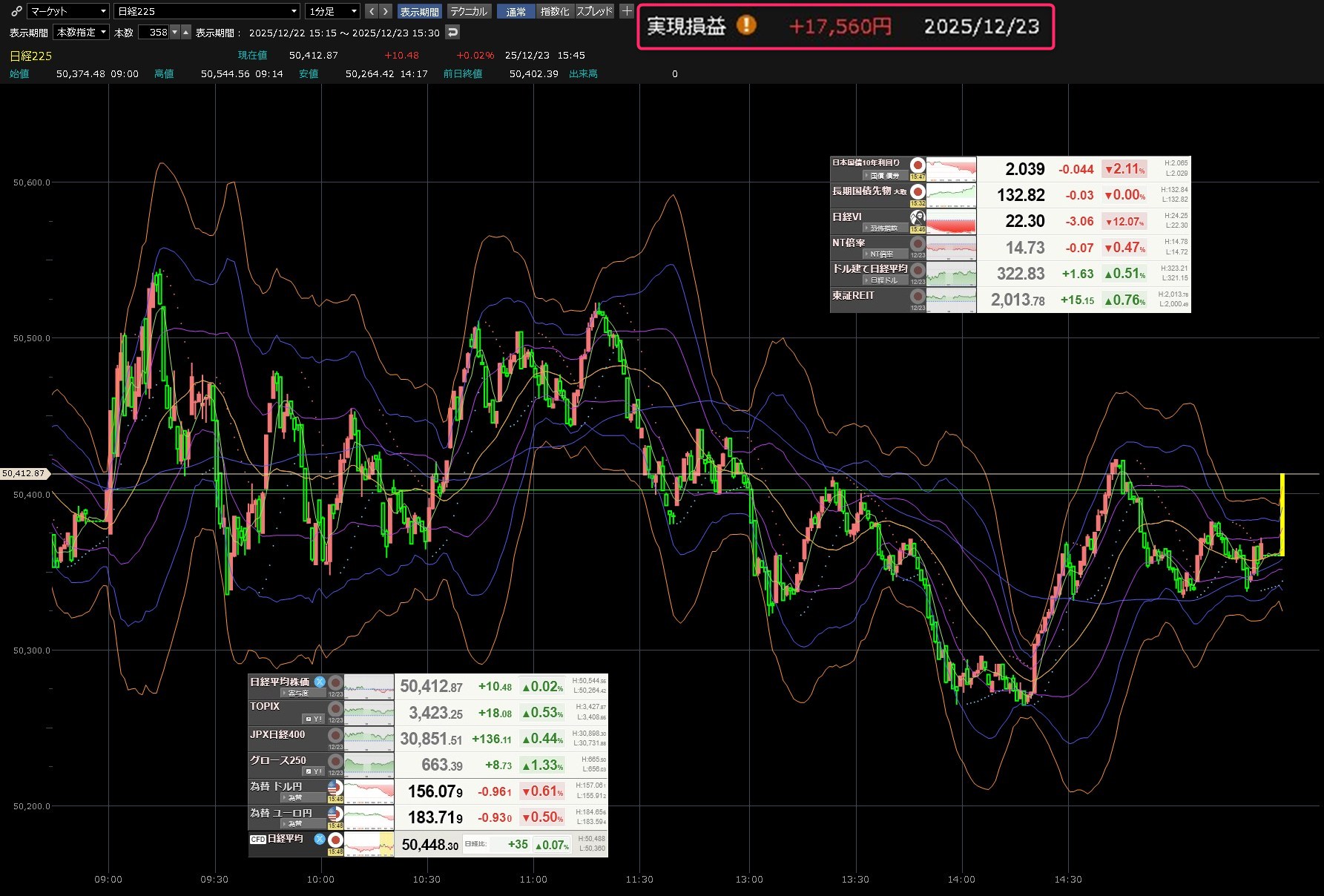 - 3 R7.12.23 今日も上昇するんかな?直近2連等で1400円上げてるからね・・・今日は商い薄で下落と見るがどうなるのかって思う火曜日・・・(´・ω・`)