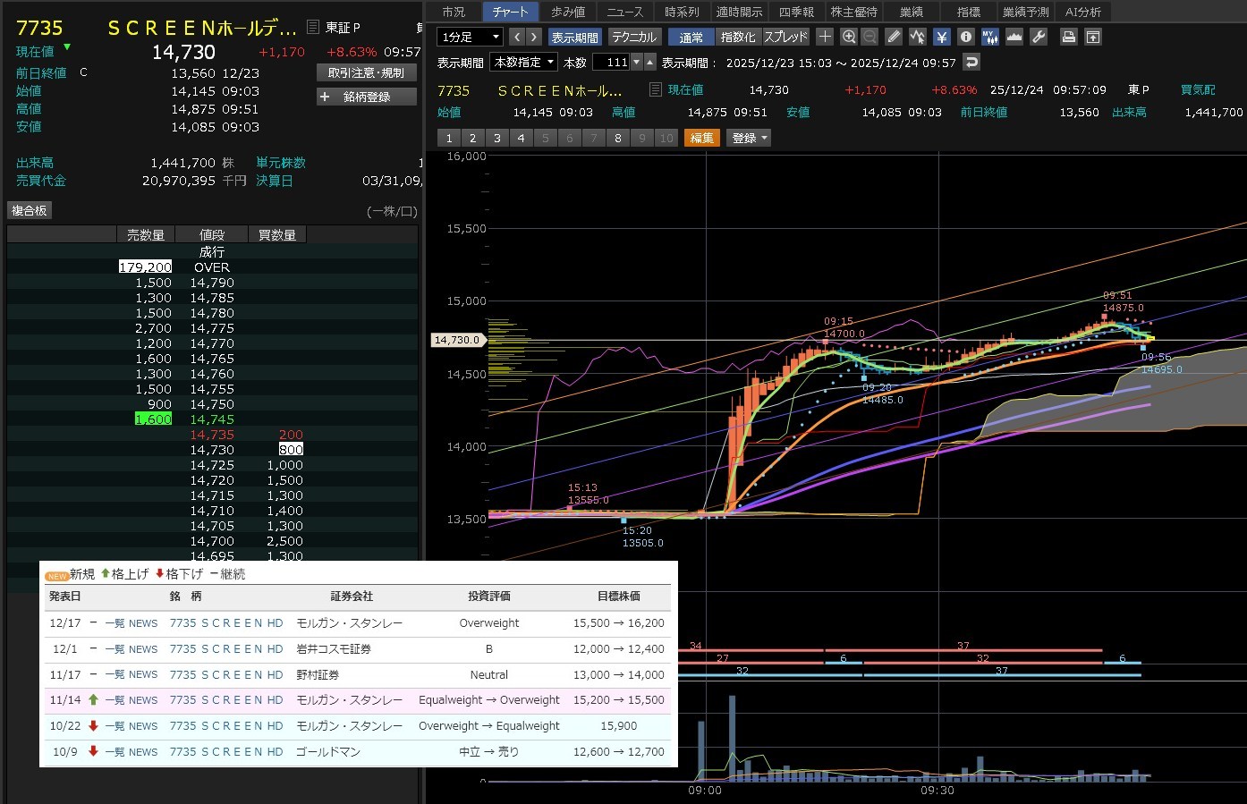 なにこれ・・・スクリン。もうええわ。ゴールドマンが売りってしてたんとちゃうん? モルガン・スタンレーが24400に目標株価引き上げとかなにそれ・・・ゴールドマンの倍やんけ。