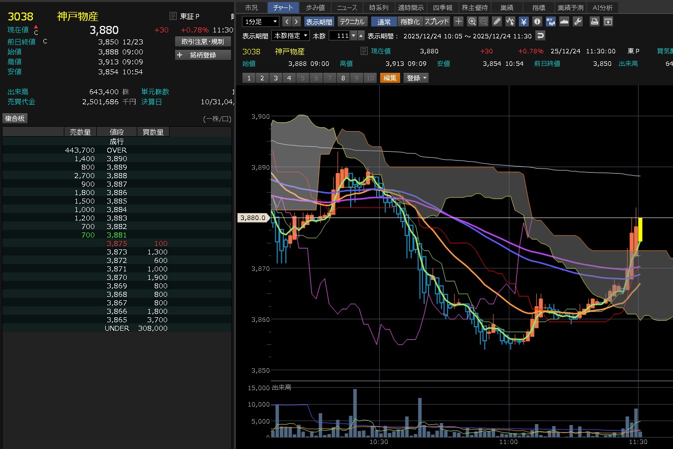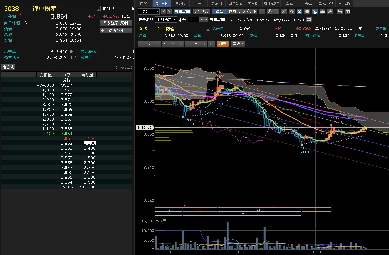 そして神戸物産は悲惨なことになってるね。下げてるわ。@3851ですわ。昼すぎるとチャート良くても一気に売られるからね。これが怖いんや。