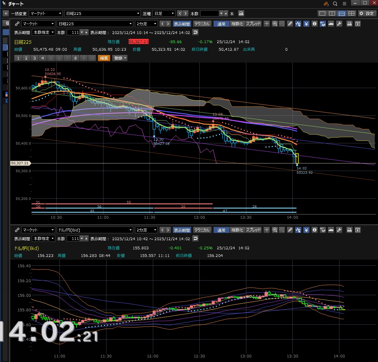もうすぐ14:00です。にしても何も買うものがない。なんかガラが来そうで暴騰も来そうでわからんねん。