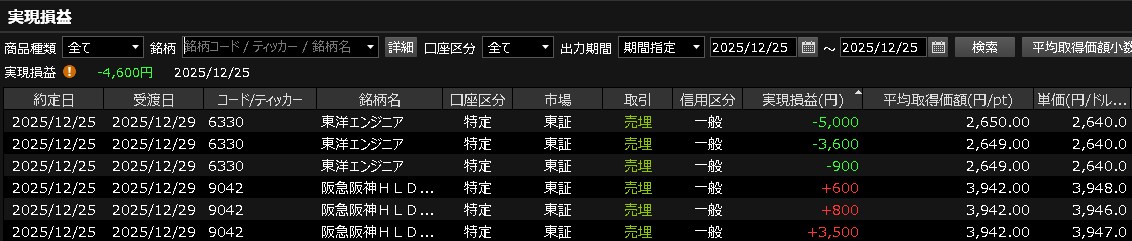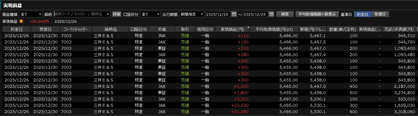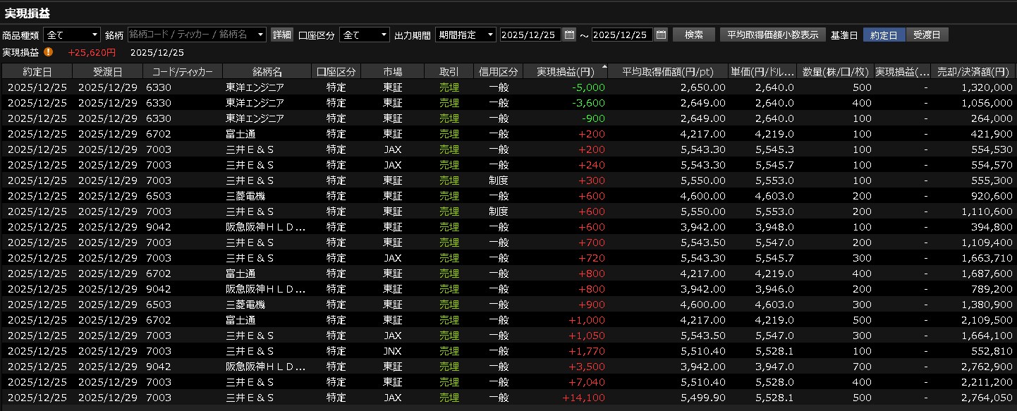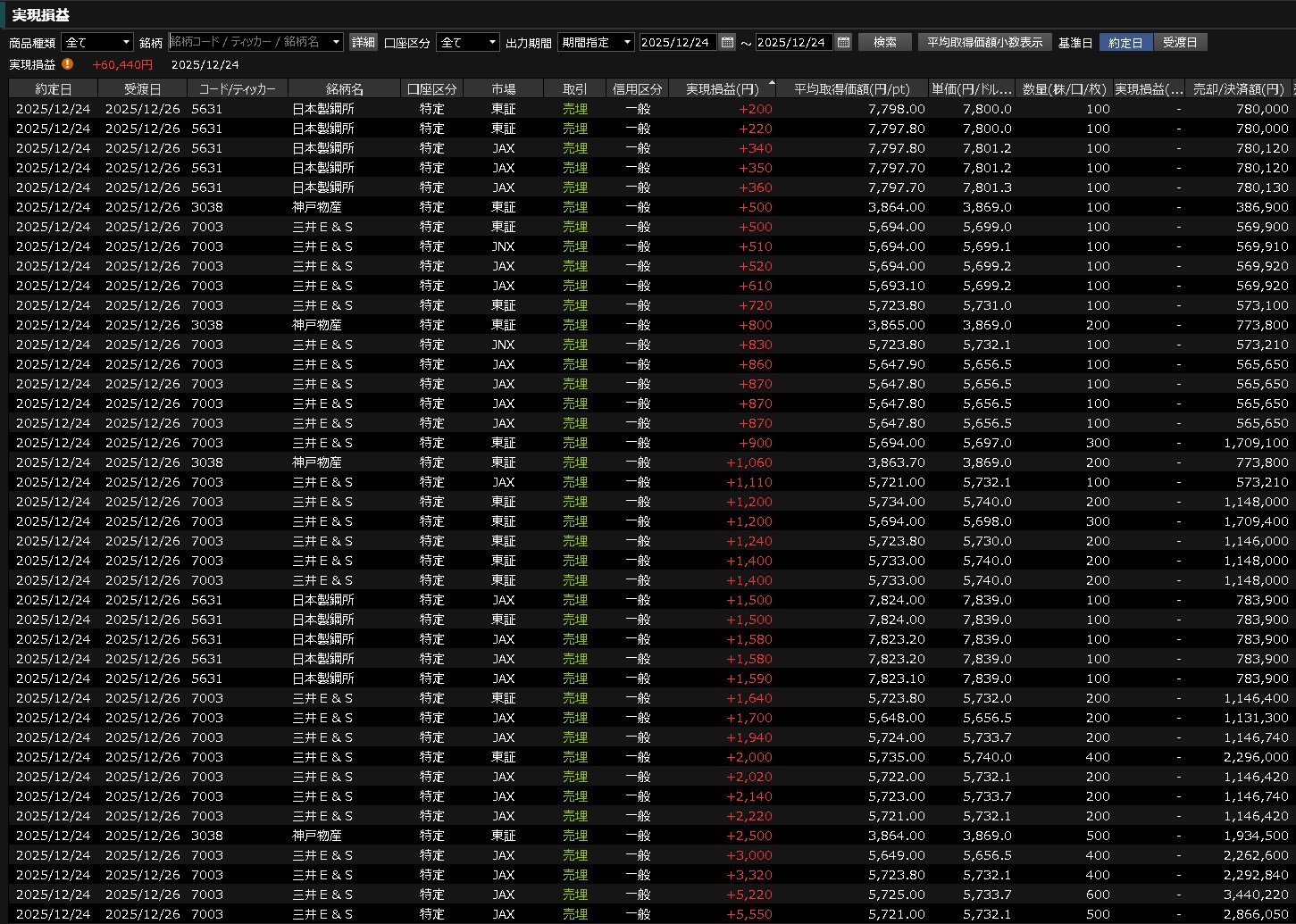 - 6 R7.12.26 権利付き最終売買日 実家へ帰っています 今年最後の取引ですね・・・来週からは新年度取引だなって思いながら過ごす週末の金曜日(´・ω・`)
