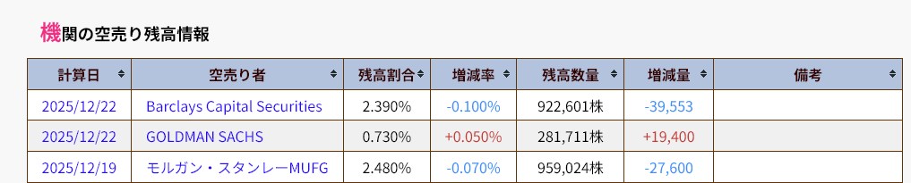 後場が始まりました。後場は機関の売り買いが入ってくるので、ちょっとヤバいと思い。処分しました。なぜなら・・・コイツラが空売りしてるから・・・