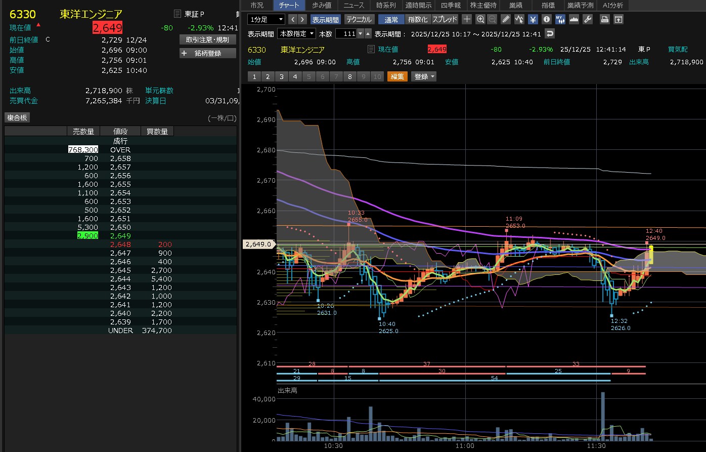 売り注文だしたら下げてきた。現在含み損で▲3700ですわ。三菱重工もマイ転したんやね。可哀想に・・・H3ロケットのせいやね。残念やで・・・失敗か・・・次に活かしたらええねん。ちょっと成功が多かったから油断したのかもですね。それにしてもワイが買うと下げるのなんなんやろうね。このチャートは上げると思ったんやけどな。VWAPか上にあるからあかんのかな。