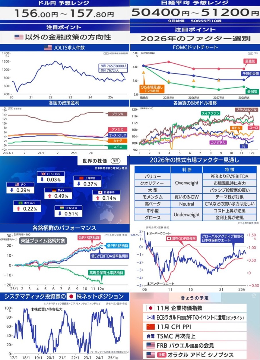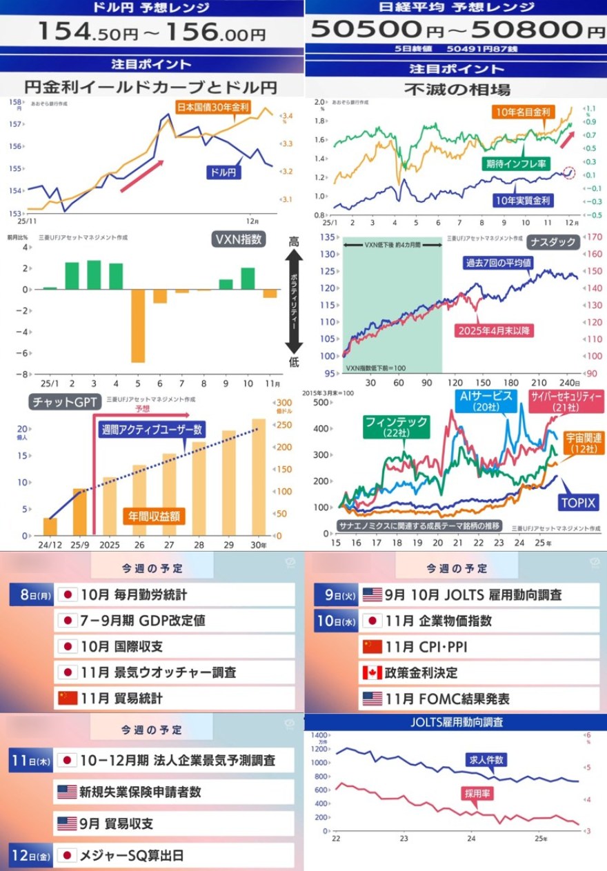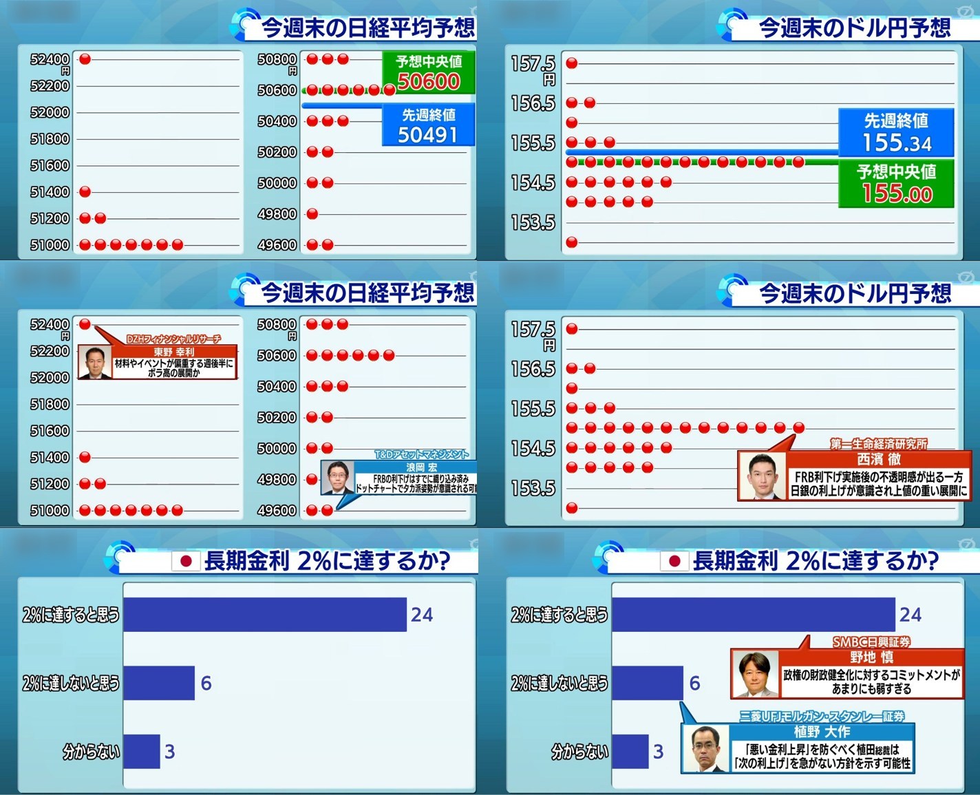 何と言ってもアメリカの金融政策とメジャーSQですね。利下げが織り込み済みですが、ここでパウエルがどう動くかですね。メジャーSQでいろいろ動きそうっすね。持ち越しは怖いわ。なんて思いながら、今週末の日経平均・為替のプロに寄る予想は以下の通りです。 いつも高い予想をするのは東野さんやったんやね。そして悲観的な予想をするのが、浪岡さんか・・・こういうのはわかってええよね。両極端は大好きやで!ワイは無難に「50000@153」とします。