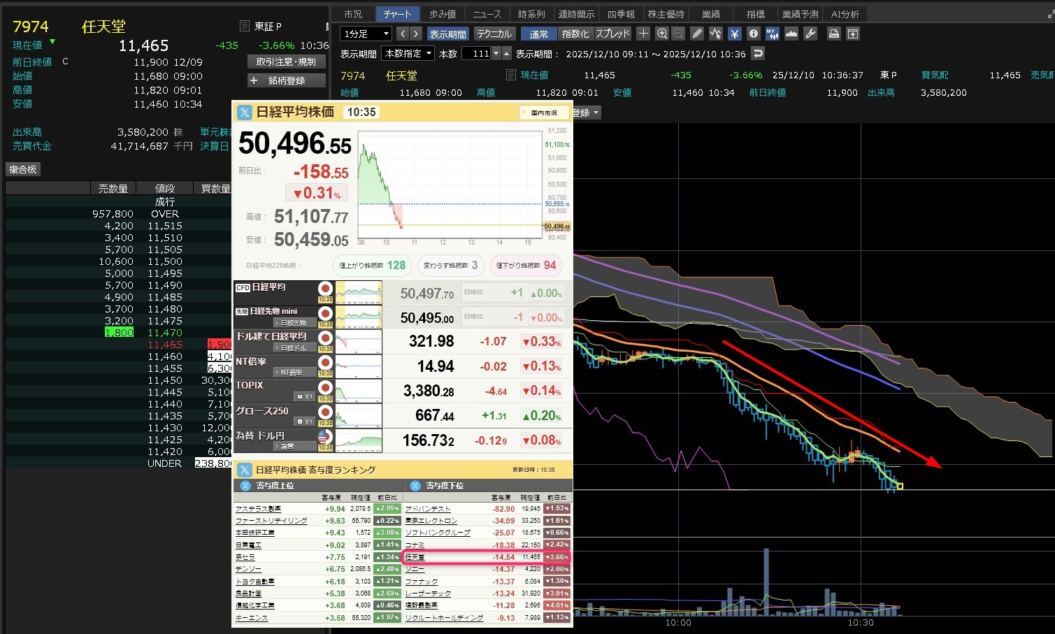 前場が始まりました。任天堂特売り・・・あっぶねーホンマに触れたらあかん銘柄やわ。怖い怖い。