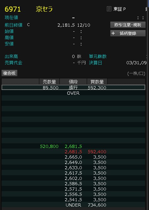 京セラ落ちてきた・・・何やったんやホンマに・・・ご発注やね。50万株の買いがなくなったわ。