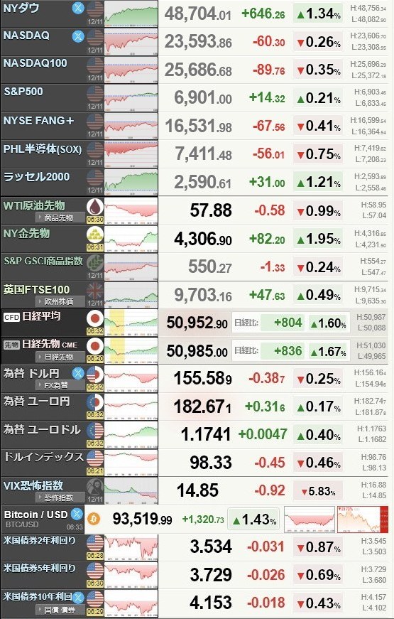 - 5 R7.12.11 FOMCは無事に通過したもののオラクルの決算は悪かったのかな?知らんけど・・・株が強いぞ木曜日ってことで今日も上げそうやね(´・ω・`)