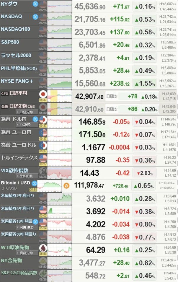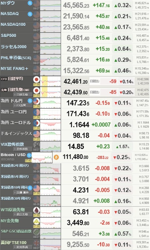 とりあえず、ノーポジになっといた。クック理事を解任した件で利下げがやりやすくなってハイテクが上昇するのか・・・それともFRBの独立性がってことでトランプの独裁を嫌って下げるのか・・・わからんのでね・・・
