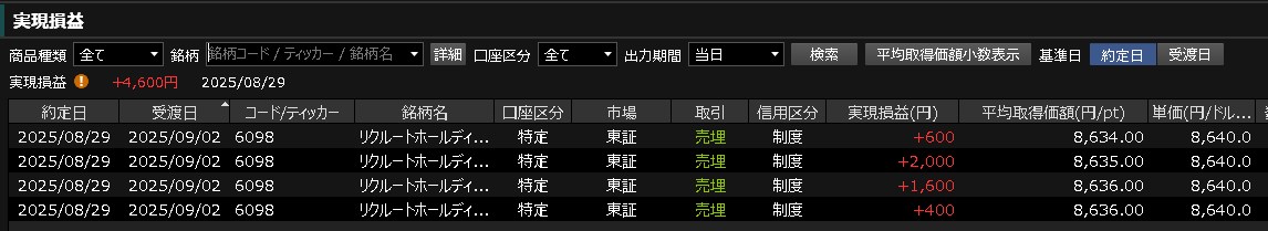 今日の取引はこれだけです。