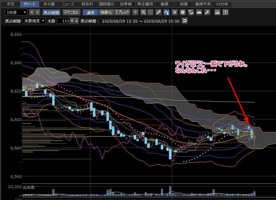 なんかさ、ワイが買うのを絶対見てるわ。コンナンで下げるようやと、今後底値をハントするしか勝てへんで・・・