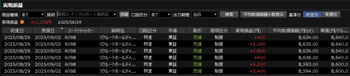 空回り・・・先週の引けでリクルートが売れて無ければ・・・この損失をすることはなかったね。