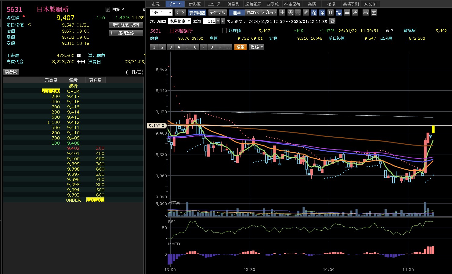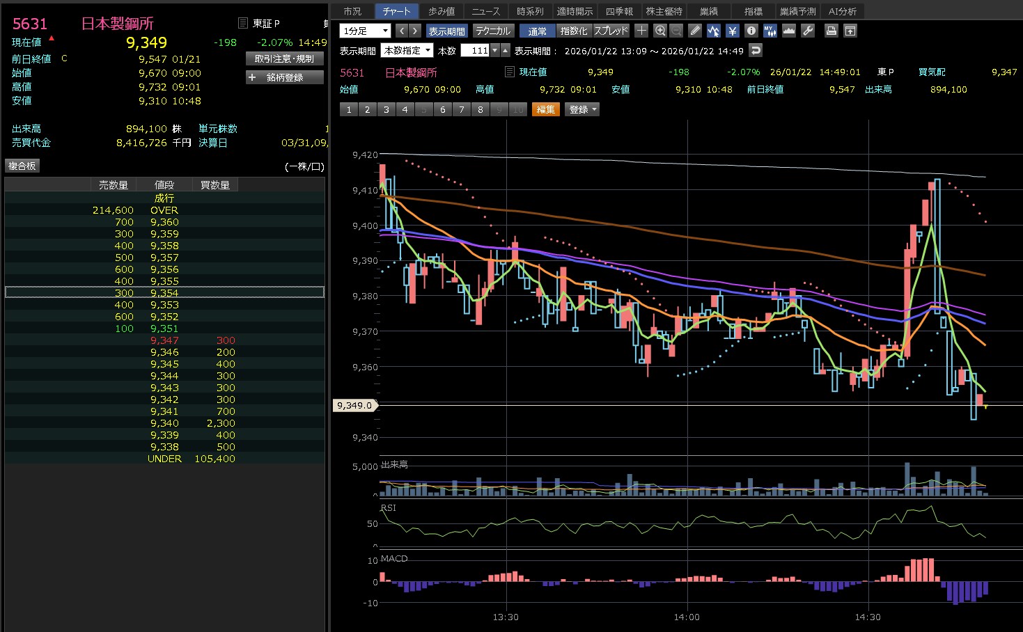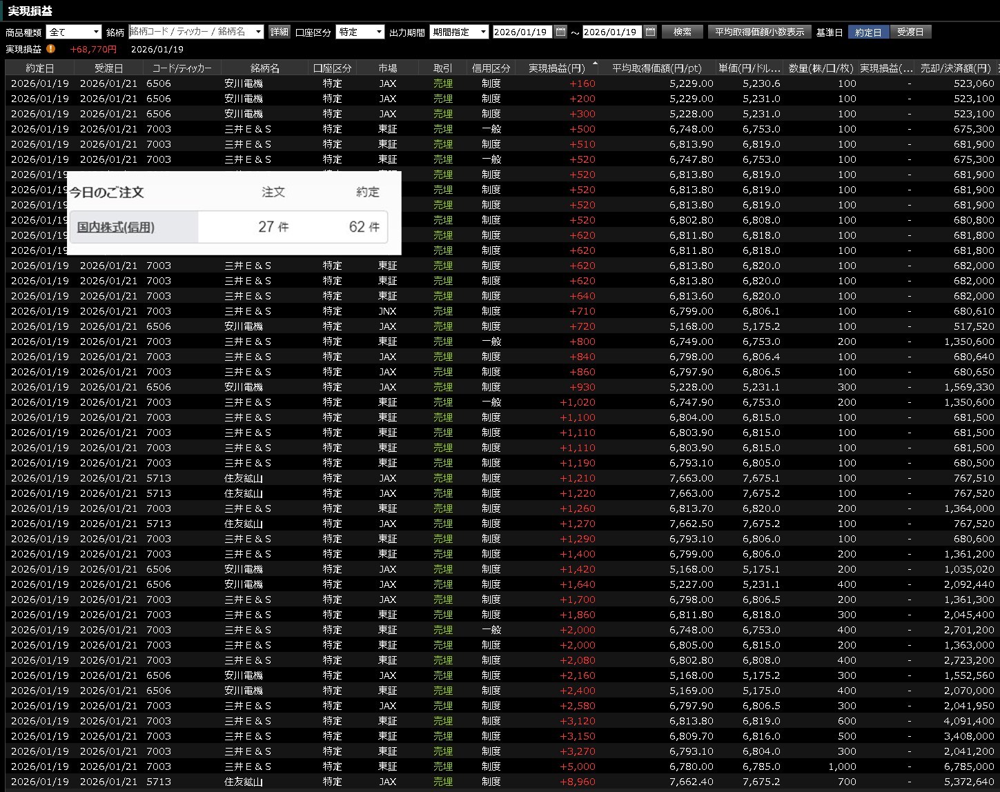 本当に何をやっても駄目でした。IHIを買ったら、ズドンが来る・・・大損や。日本製鋼所は空売りしたら担がれて、もうね・・・本当に何をやっても駄目。悔しいぐらい何をやっても駄目。出かけてる間に下げるんやもん。