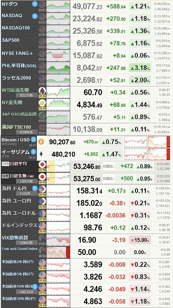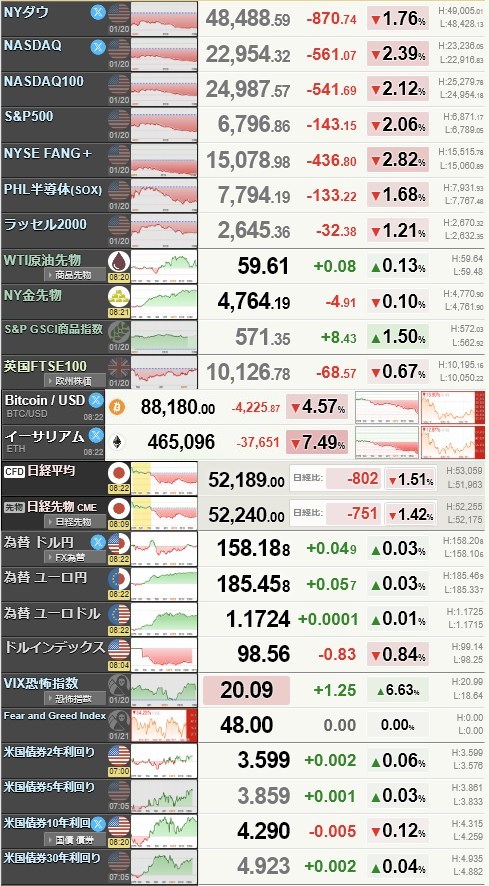 R8.1.20 トランプ就任1周年!そしてグリーンランドの影響が出てくる今晩のアメリカ市場に備えて・・・どうなるのかなって思う火曜日(´・ω・`)