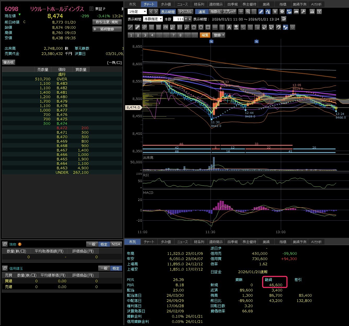 昨日10万株増えてやべーなって思ってたら昨日は20万株増えてたんやな。デイトレ銘柄なだけにちょっとこれはショックやで!普通は減るやん。これはあれやね。意外と売りでしょう。そしてリクルートはレーティングで目標株価引き上げが来たので上げるでしょう。あんな派手な下げ方したから、レーティングの格下げが来てそこで買おうと思ってたのに・・・そうは問屋が卸さないって感じです。諦めます。コスモスは格下げやったのに・・・大和め・・・