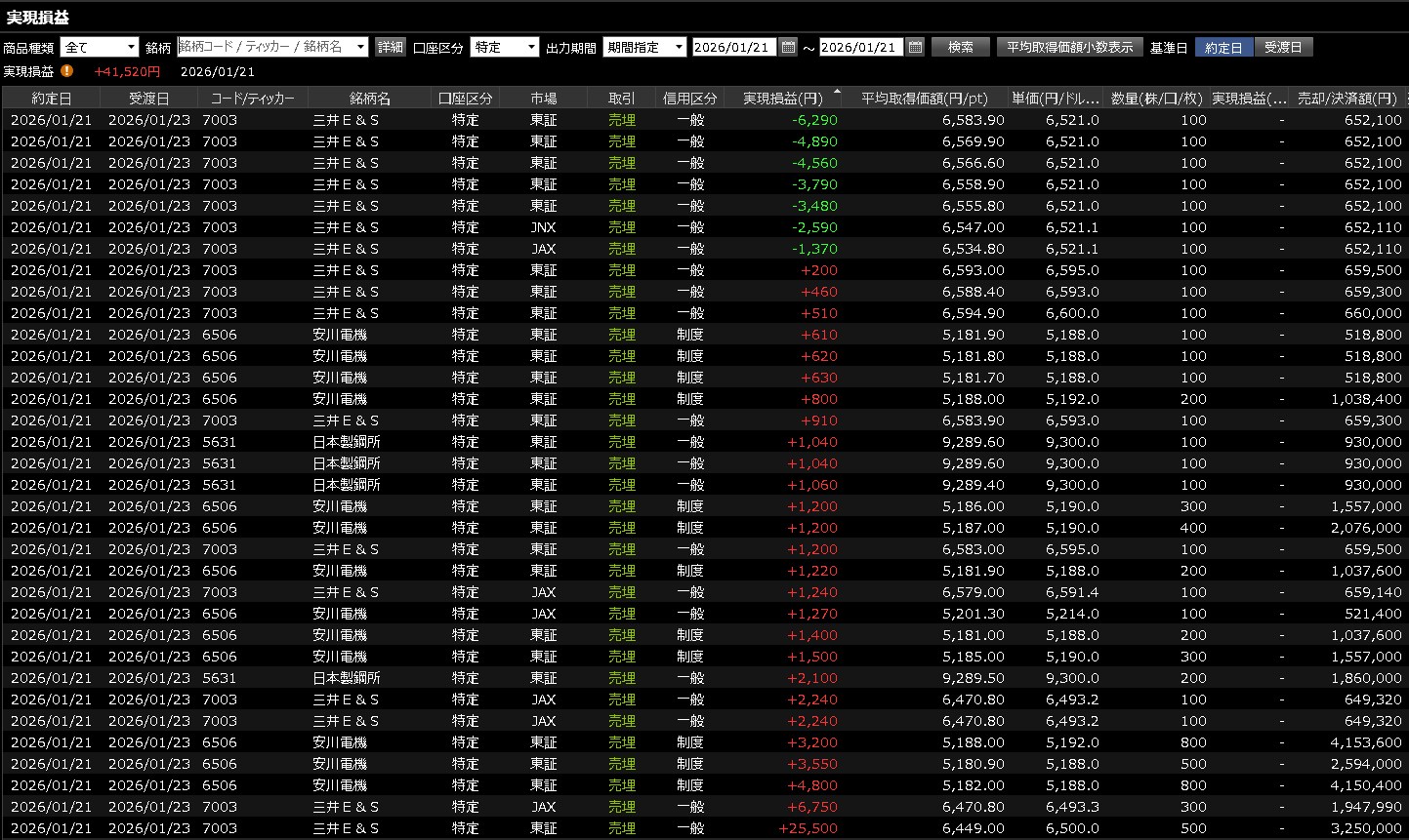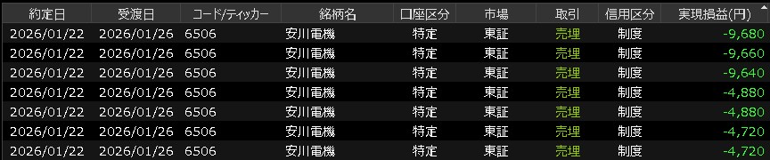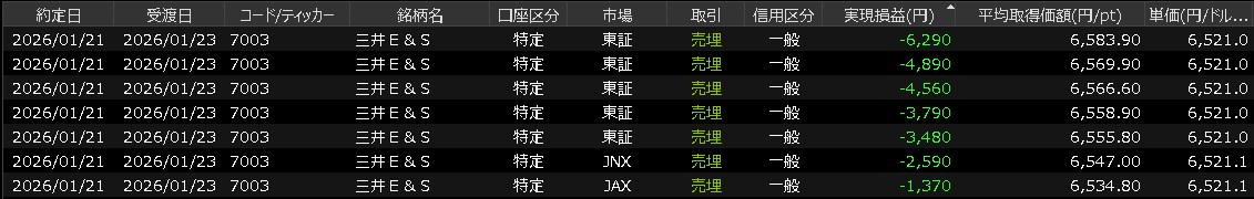 トランプのグリーンランドの影響があるからノーポジにしておきました。IHIがホンマに悔しいわ。一瞬で持っていかれた。三井ESも歯医者に行ってる隙に下げたよね。日本製鋼所も空売り持ったままにしておけばよかったよ。乙でした。明日も相場を楽しみます。