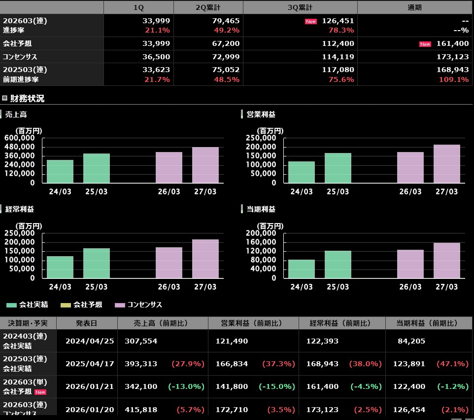 市場予想を上回る利益を達成したものの、次期(2026年1-3月期)の見通しについては供給不足の影響などから慎重な姿勢を見せています。