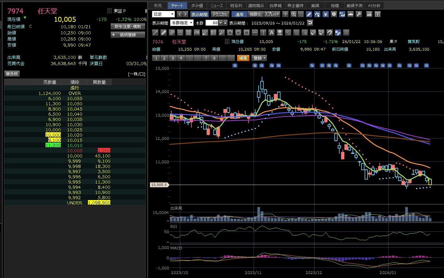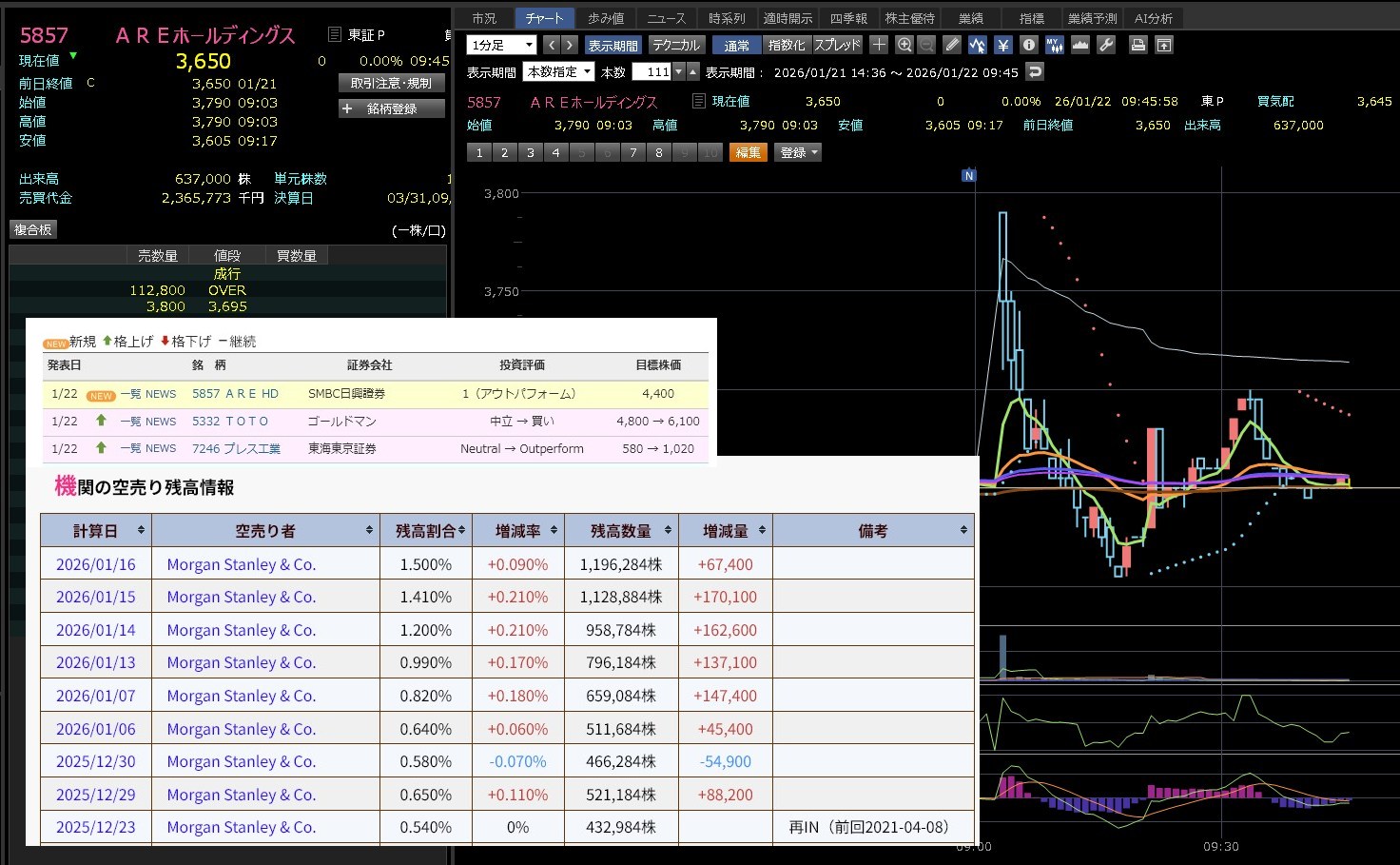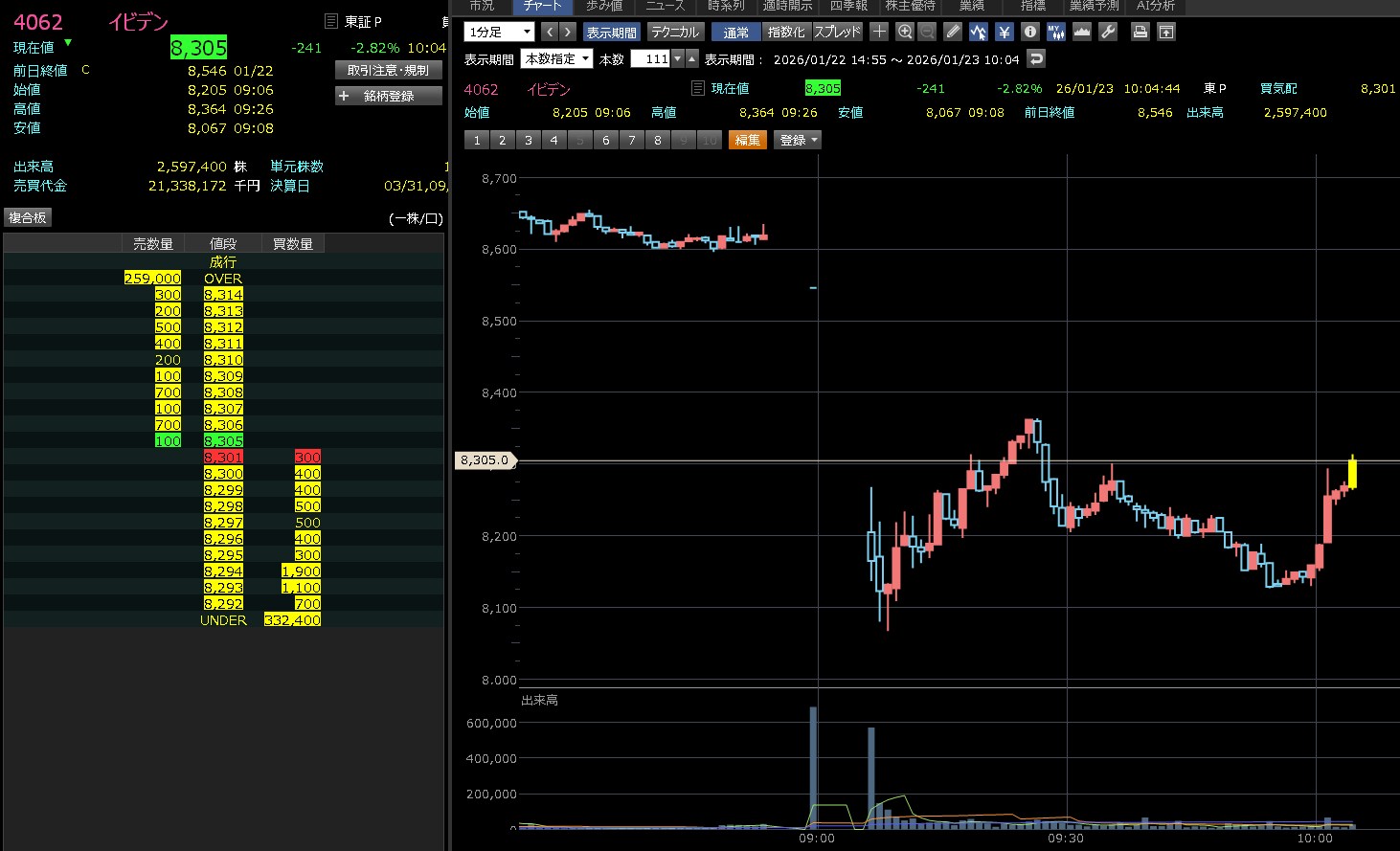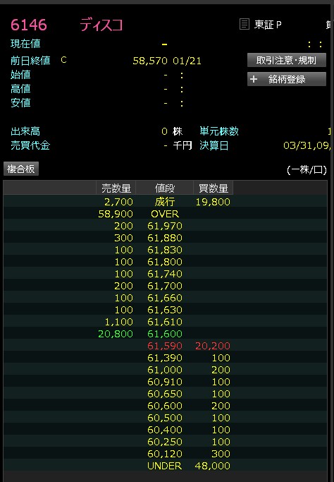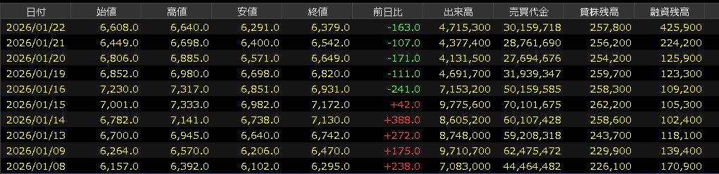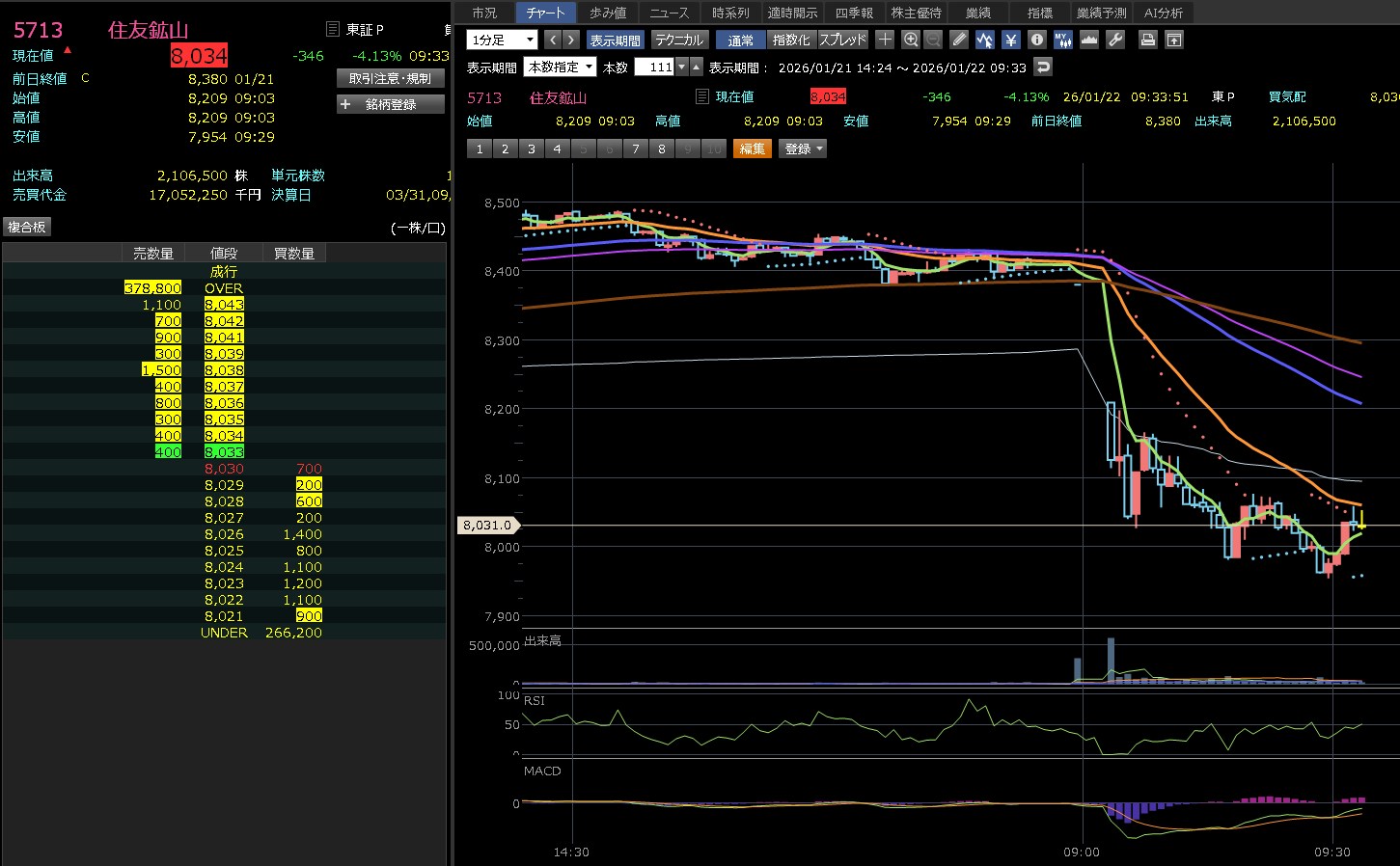 あぁ、もう最悪や。空売りしてたのにね・・・ワイが買うと逆に動くわ。なんやこれ・・100円安スタートかよ。