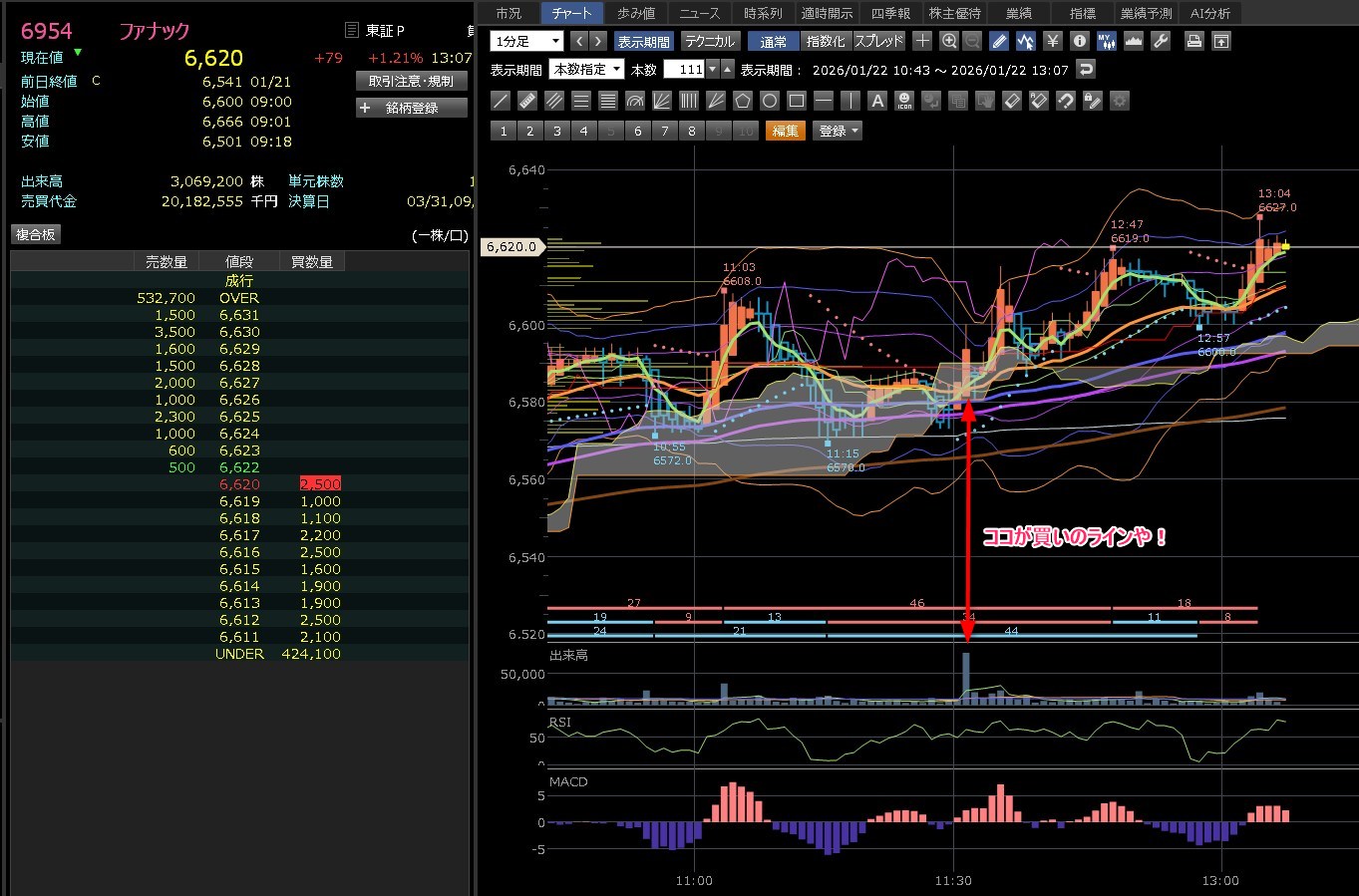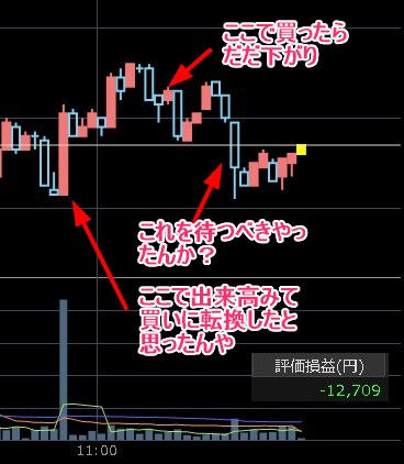 寄り底でしたのでそろそろ前場の利食い売が出ると思ったんや。だから入らなかったんやで!11:16