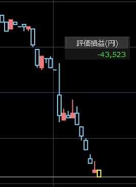 後場が始まりました。やべえ・・・買ったらズドンが来た。リバ狙いはアカンね。やっぱり・・・これはまずいぞ!もう知らんわ。、放置です。さよなら・・・買い物に行ってきます。▲40000タッチした。一瞬でこれやから株は怖いわ。