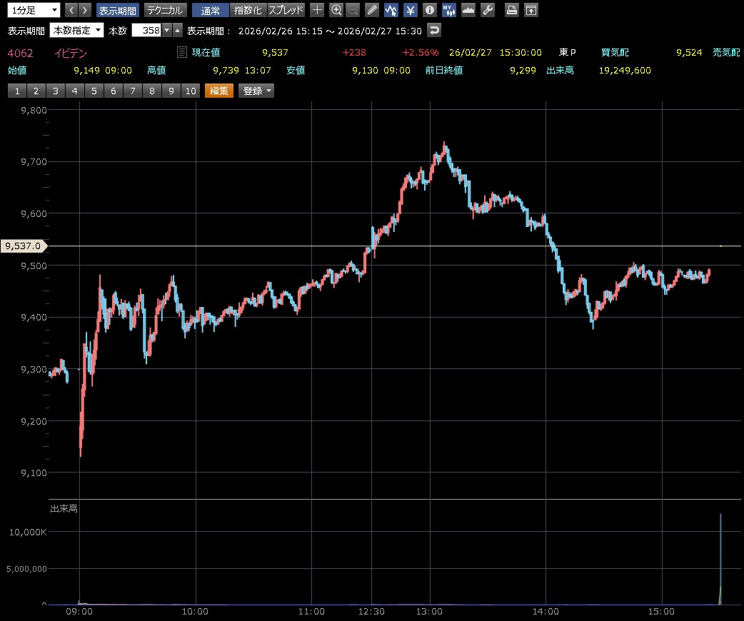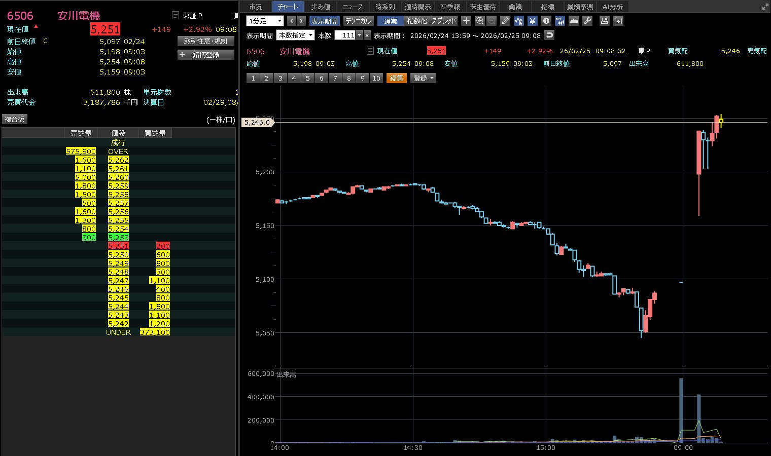 前場が始まりました・・・何もしてないですが村田製作所の上昇はちょっと意外でした・・・持ち越してたら・・・なんて思ったりもしたけれどこれは仕方がない。タラレバ言っても仕方がない。IBMの下げは富士通、日本電気、TISなどに効いてますね・・・ホンマに怖いでアンソロピック・・・富士通やNECはハードも作ってるんですけどね。これちょっとやりすぎとちゃうかな?知らんけど・・触らぬが吉ですね。にしても非鉄金属セクター強すぎやねん。買えへんってこんなん。