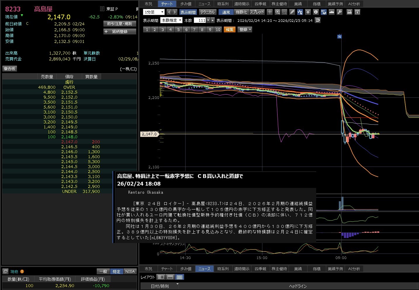 R8.2.25 権利付き最終売買日 高島屋とJフロントリテイリングを購入して涙目のワイ・・・イランとの交渉がうまくいくのかななんて思いながらエヌビディア決算に怯える魔の水曜日(´・ω・`)