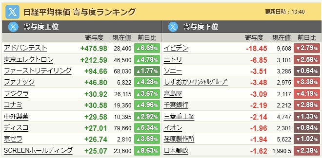 今日は今のところ四天王のうちハイテク3つは下げ寄与が高いね。コイツラ3つで640下げてるやんけそう思うと日経はプラスなんやろうね。ワイの前日比は大幅安ですが・・・高いところで買ってもたわ。もう前場だけで信用買い結構回してるわ。全部タイミング悪いけどね。前場乙でした。