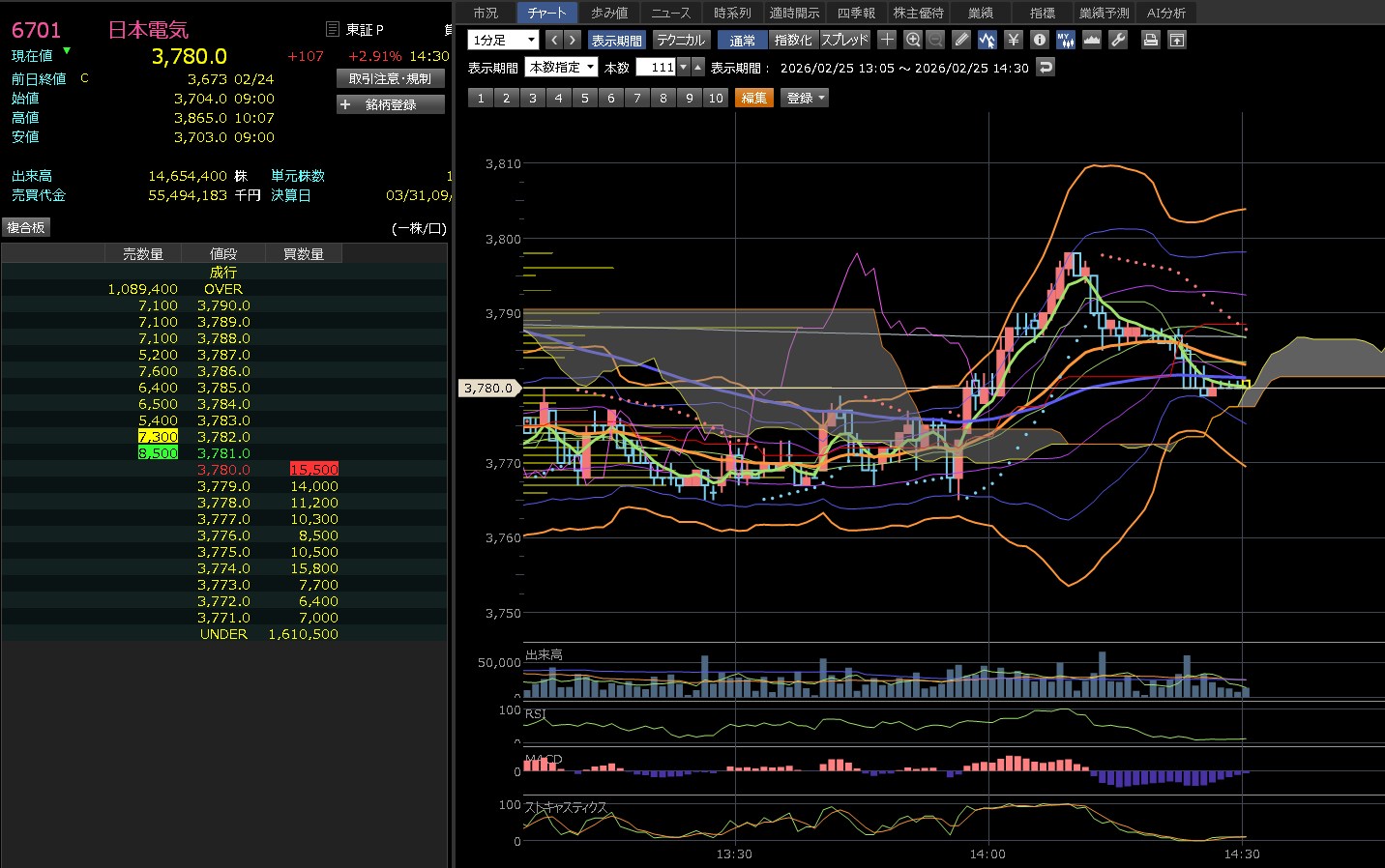 NECはここから下げトレンドのような気がするけれどMACDはもう少ししたら買いなんですよね。難しいわ。