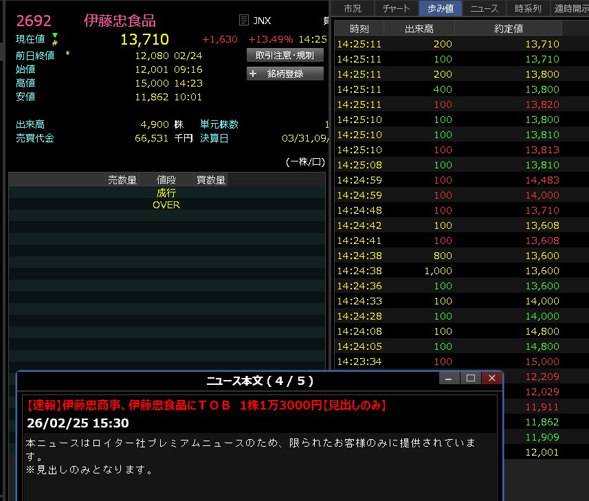 これちょっと可哀想やで 15000で買った人は20万の損失やんか・・・伊藤忠はいっつもこうやねん・・・そう言えば今日は2月の権利付き最終売買日やん・・・
