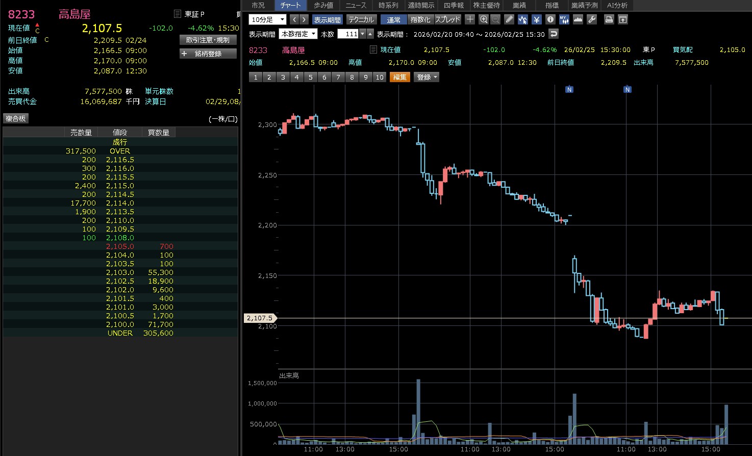 優待にぶつけてくるとわね・・・クソやろこれ・・・高島屋・・・Jフロントもマイナスやわ。きびしー・・・含み損やから追加購入しようと思ったら中途半端な位置なので見てるだけ・・・