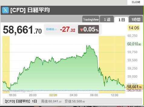 日経平均58,850.27+96.88+0.16%[15:30]米ドル/円155.9-0.21-0.13%[15:30]
