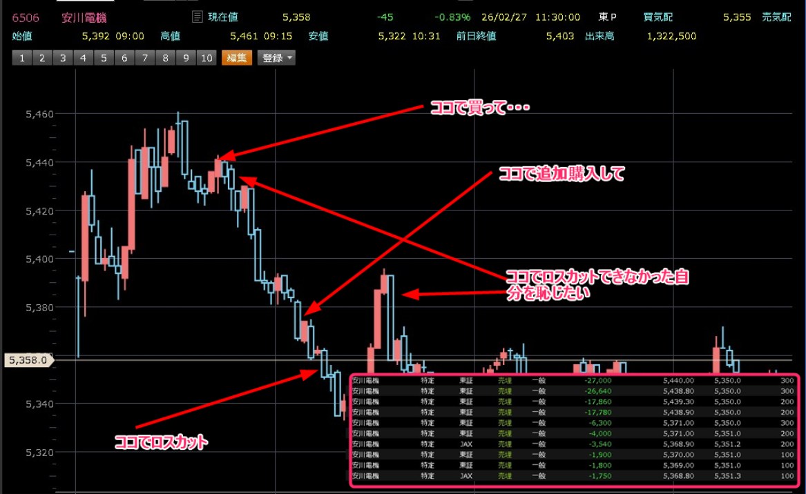 自分に似つかわしくない売買代金の少ない株を買ってしまった。含み損は3万超えてるし・・・やってしまったわ。昔お世話になった銘柄なんやけどな。クソほど弱い。なんでこんなに売られるの?やっちまったわ。いっつも同じミスをする。涙が出てくる。安川持って前場を大人しくしといたら良かったわ。全然成長してない。安値更新しそうやわ・・・弱すぎやろ!