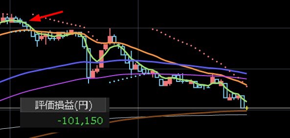 あかんわ・・・並行して日経が下げてきてるからめっちゃ売られうやん。含み損がガンガン増える。ワイが売り出した途端、ズドンときてね・・・ほんとうにね。絶対見られてるわ。