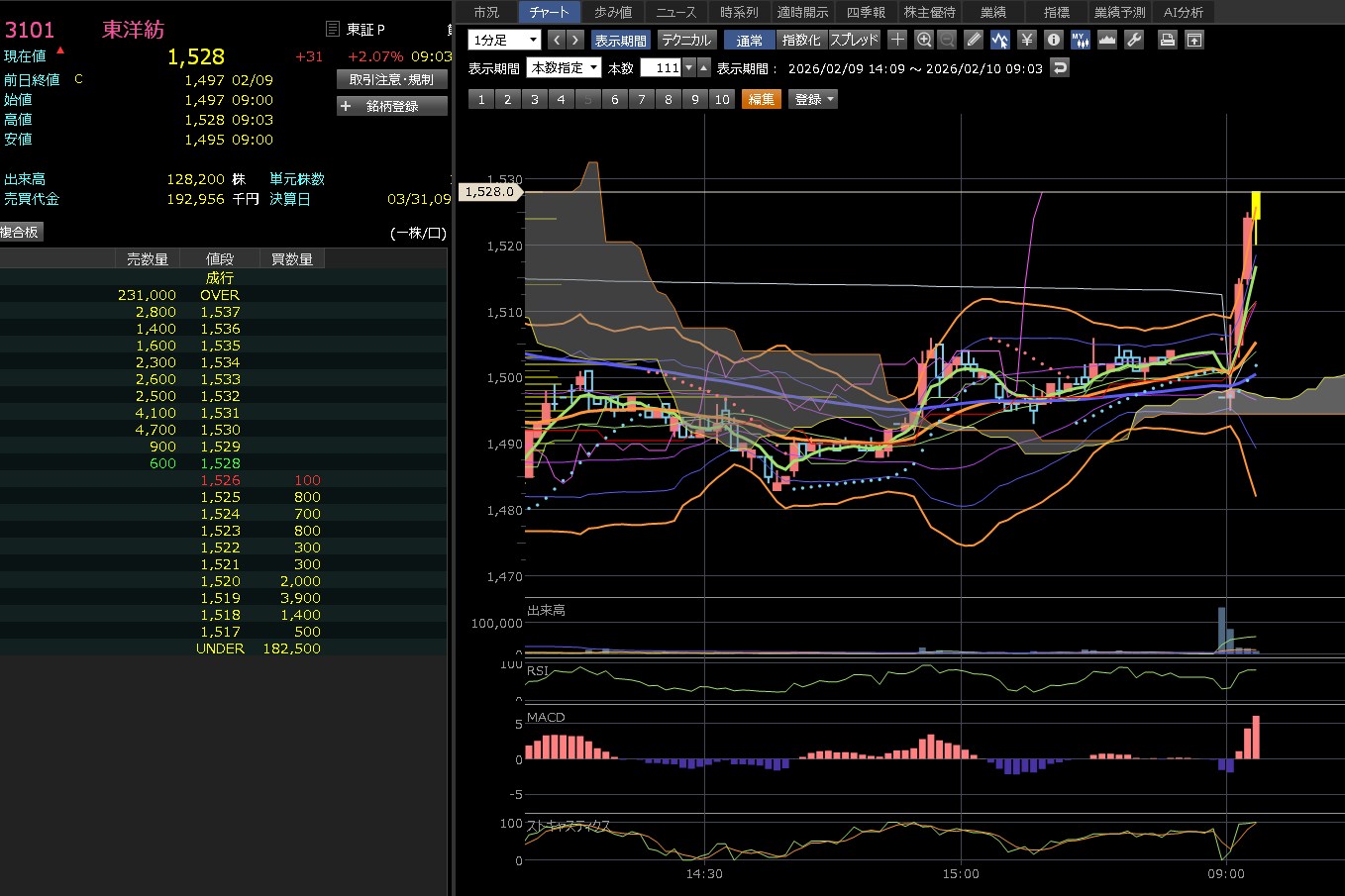 8:47です。成り行き売が買いの1.3倍ってなんでなん?決算良かったんとちゃうの?この手の売買代金の銘柄はやっぱり合わないっすね。もっと良く見ておくべきでした。|柱|ヽ(´・_`・。)反省…せめて3σはチェックしとくべきでしたね。山一電気は3σ超えて上げたんですけどね。残念(´;ω;`)シクシク