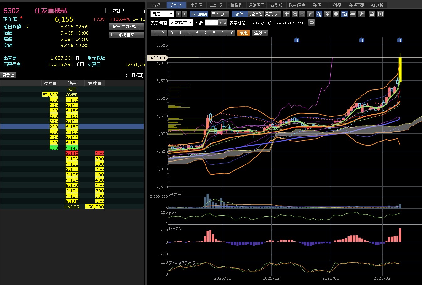 強烈な上昇トレンド: 移動平均線(短期・中期・長期)はすべて上向きの「パーフェクトオーダー」で、トレンド自体は非常に強いです。