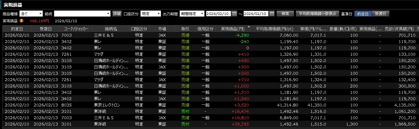 今日はニッスイをもっと長く持っておくべきでしたよ。それだけです。良い決算だったのにすぐに投げてもた。それだけが悔やまれる・・・本日ワイの取引は以下のとおりです。今日は小銭を稼ぐために随分回転させましたよ。