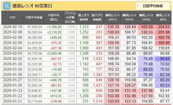 騰落レシオまた上がるね。ってそうでもなかったわ。
