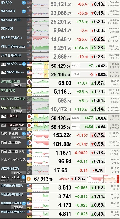 チャイナは明日から春節みたいですね。ただ航空便がいつもの半分ってことで、期待してええんか?京都には来て欲しくないんや。なんて思いながら、米市場の結果と本日のレンジ・予定は以下のとおりです。
