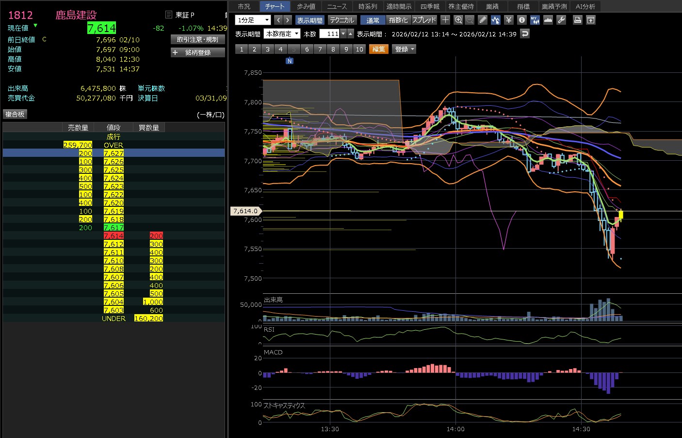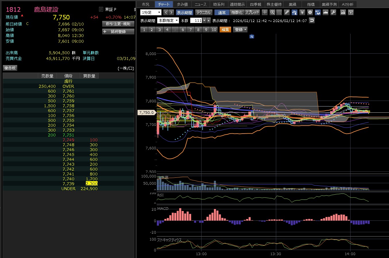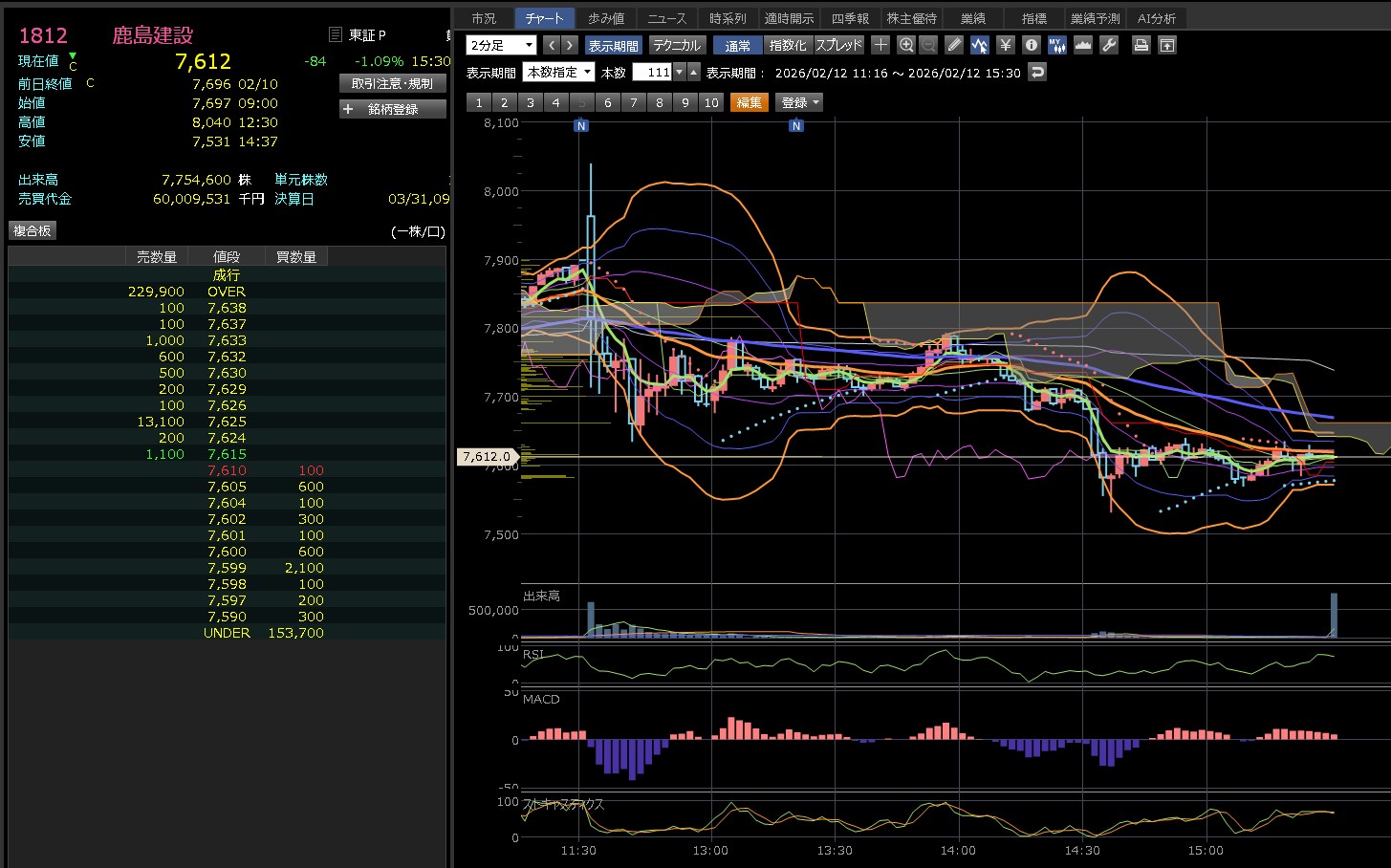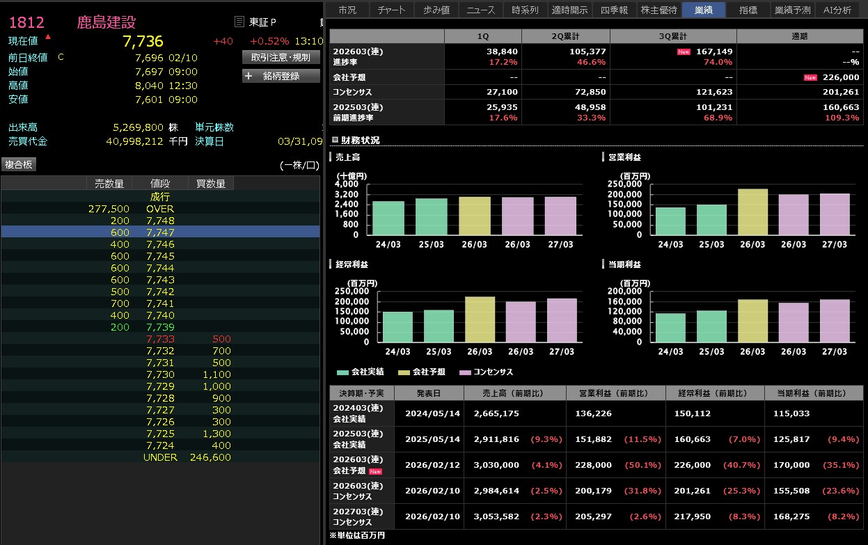 ご提示いただいた「1812 鹿島建設」の日足チャート(2026年2月12日 15:30時点)を分析します。