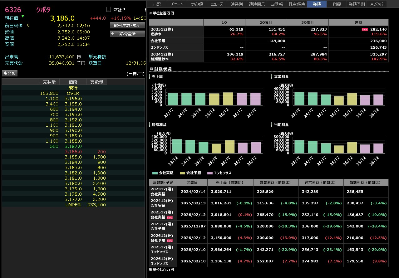 クボタはこの決算で上げるのか・・・来期の予算がコンセンサスを超えてるからか・・・