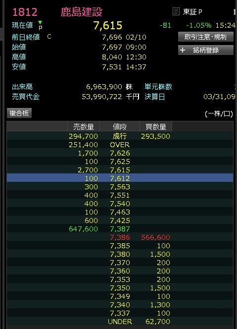 鹿島建設・・・(´;ω;`)シクシク ワイのロスカット金額よりも60円上がってる。これね・・・1400株あったから84000多くロスカットしたことになるんやで・・・あかん・・・なんや鹿島・・・@7280ってどういうことやねんってあれ@7290になった。わいね・・・これね・・・絶対監視されてるわ。おかしいもん・・・ロスカットしたら上げるっておかしいもん。確かに良い決算ではあった良い。だったら最初から上げーや