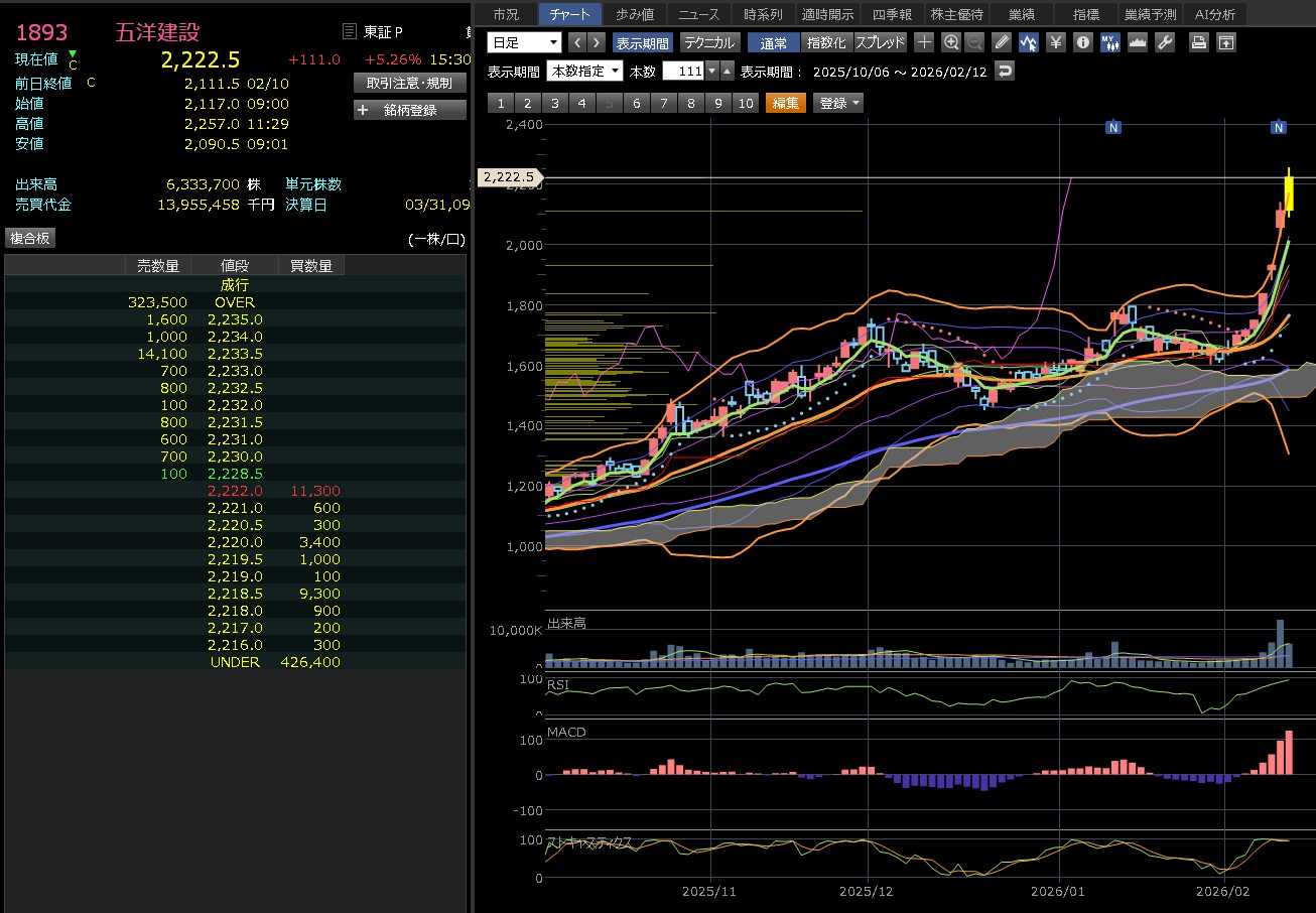 ニュースだけ見てたらすごいんやけどね。五洋建設見てると鹿島のほうがええ気がするんやけどね。