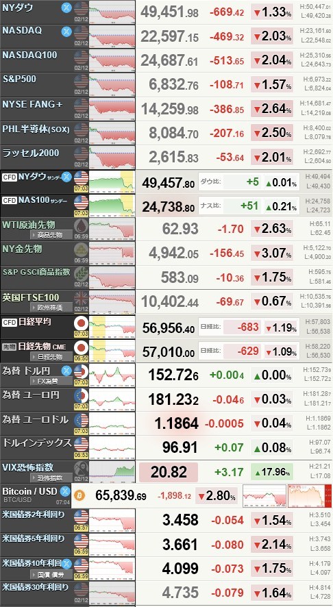ソフトバンクの利益って結局またチャットGPTの含み益かよ・・・こんなの絵に描いた餅やんけ そらADR上がらんはずやわ。そしてソフトバンクが調子が悪いってことでCFD・・・日経下げてんのかな?それにしてもアンソロピックショックが収まらないですね。ソフトウェア関連が軒並み安らしい。リクルート厳しいか!?