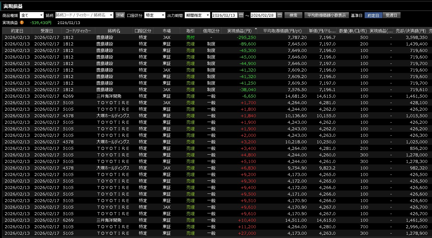 TOYOTIREココまで落ちる決算ではないよねってことで前場買ってましたが、利食いが早すぎた・・・まぁ良いよ。コツコツいくよ。今後はポジション持ったままのお出かけは中止や。コツコツいくよ。今回の鹿島は身にしみたわ。