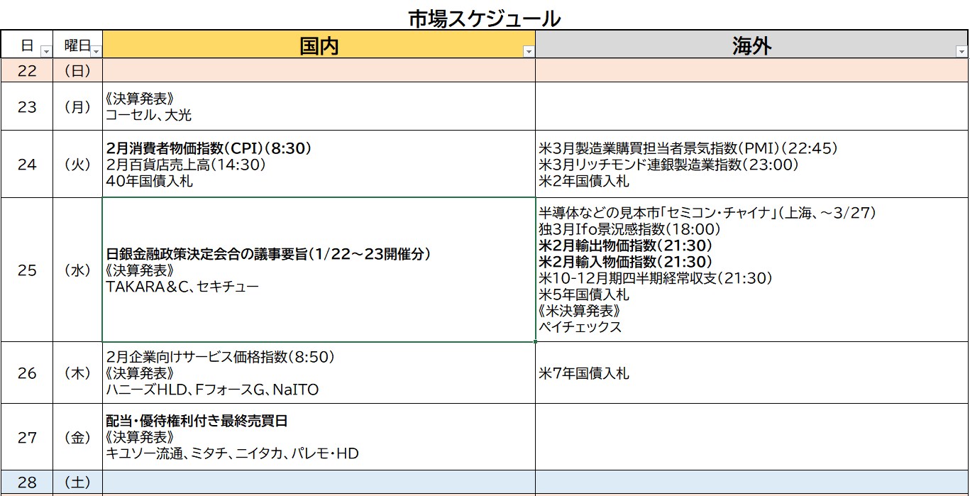 もう諦めの境地やね・・・戦争は終わらん。イランはいやらしいことをしてくる。革命防衛隊はなかなかやるよ。日本で言うところの王手金融製造財閥と防衛が一緒になったような感じらしい・・・知らんけど・・・なんにしてもテロ支援国家・・・どうすれば良いのかな?もうわかりませんなんて思いながら、今週の予定は以下のとおりです。
