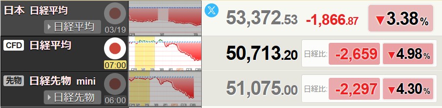 そら先物が▲2000超えてますからね。予想もできなかったのでしょう。ワイは・・・「52500@157」を予想しますよ。そろそろイランも弾薬尽きるでしょ。今は最後のあがきだと思ってる。権利付き最終売買日が週末にありますからね。