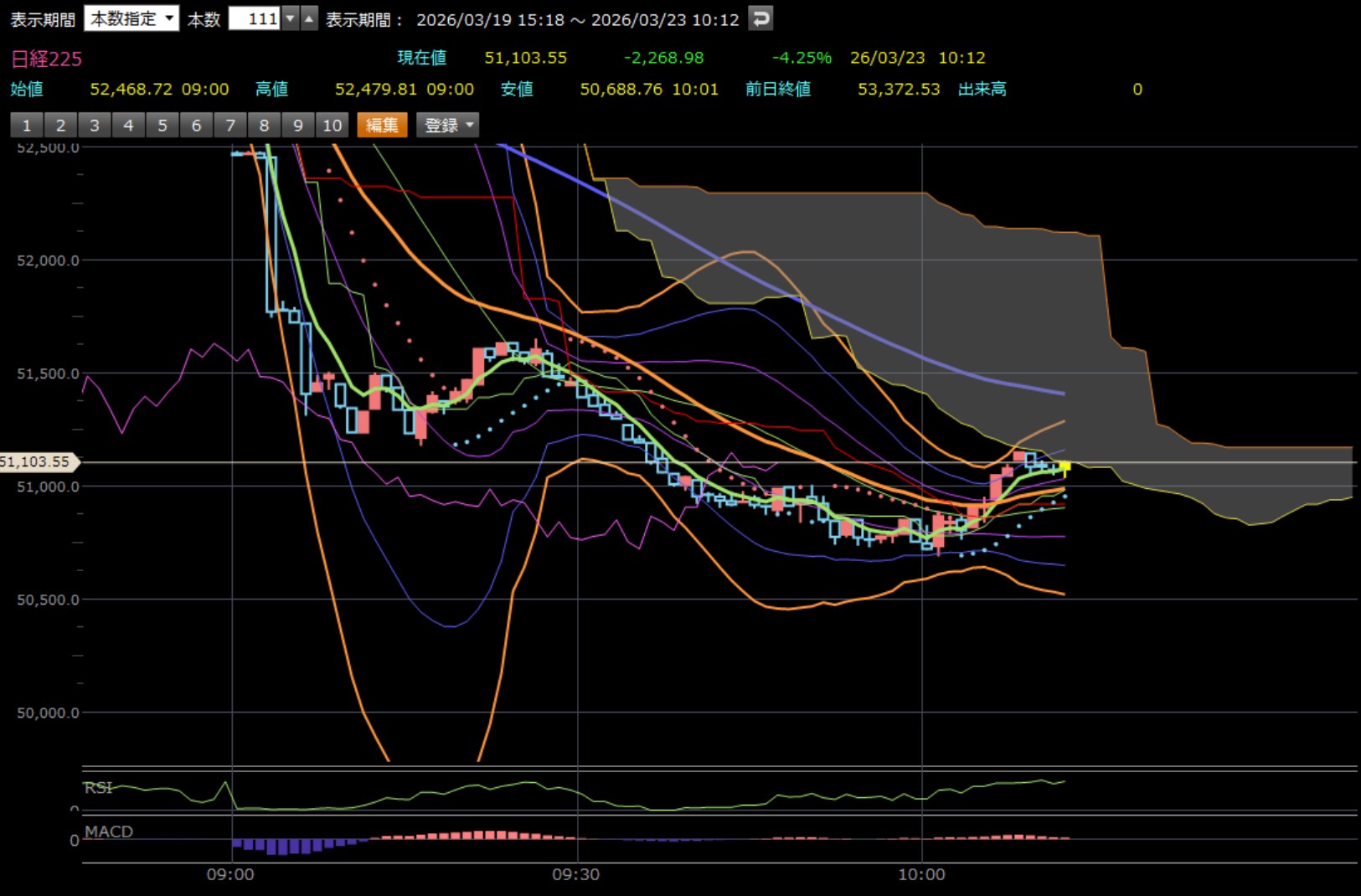 でもね・・・明日はなんとなく大幅高でむかえそうな気がするのよ。それか水曜日?水星逆行が終わって彼岸も終わって、スピリチュアルやアノマリー的にはここから再度上昇でしょ。知らんけど・・・本日も乙でした。明日も相場を楽しみます。今日は買うのが早すぎた。それだけや。買いに転換してからかわないと・・・緑の線がオレンジの線を突き抜けてから買っても遅くは無い。ホンマにルールを守れよ。ワイ・・・乙でした。