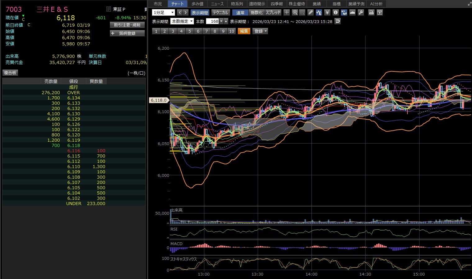 ワイが買ってたのは三井ESやったんや・・・もうね・・・ホンマにやっちまったよ。@6450でよって@5980まで下落するとはね・・・やり過ぎや。@6240で買えてしまって、急いで売ろうとしたらもう遅かった・・・そして引けまで保有してロスカットよ。