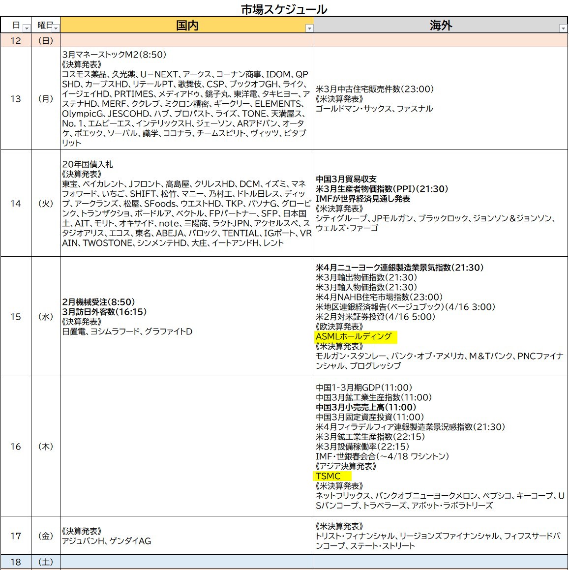 今週の予定 週末に、トランプが半導体など一部製品の関税を見直しました。関税しないってことになりました。(今週中に半導体については別途発表するみたいです)これで関税によりアイフォンの値段は上がらなくなったみたいです(発表次[…]