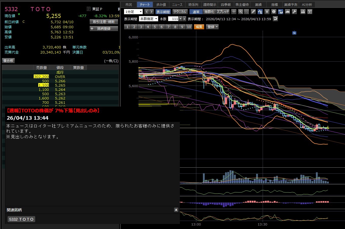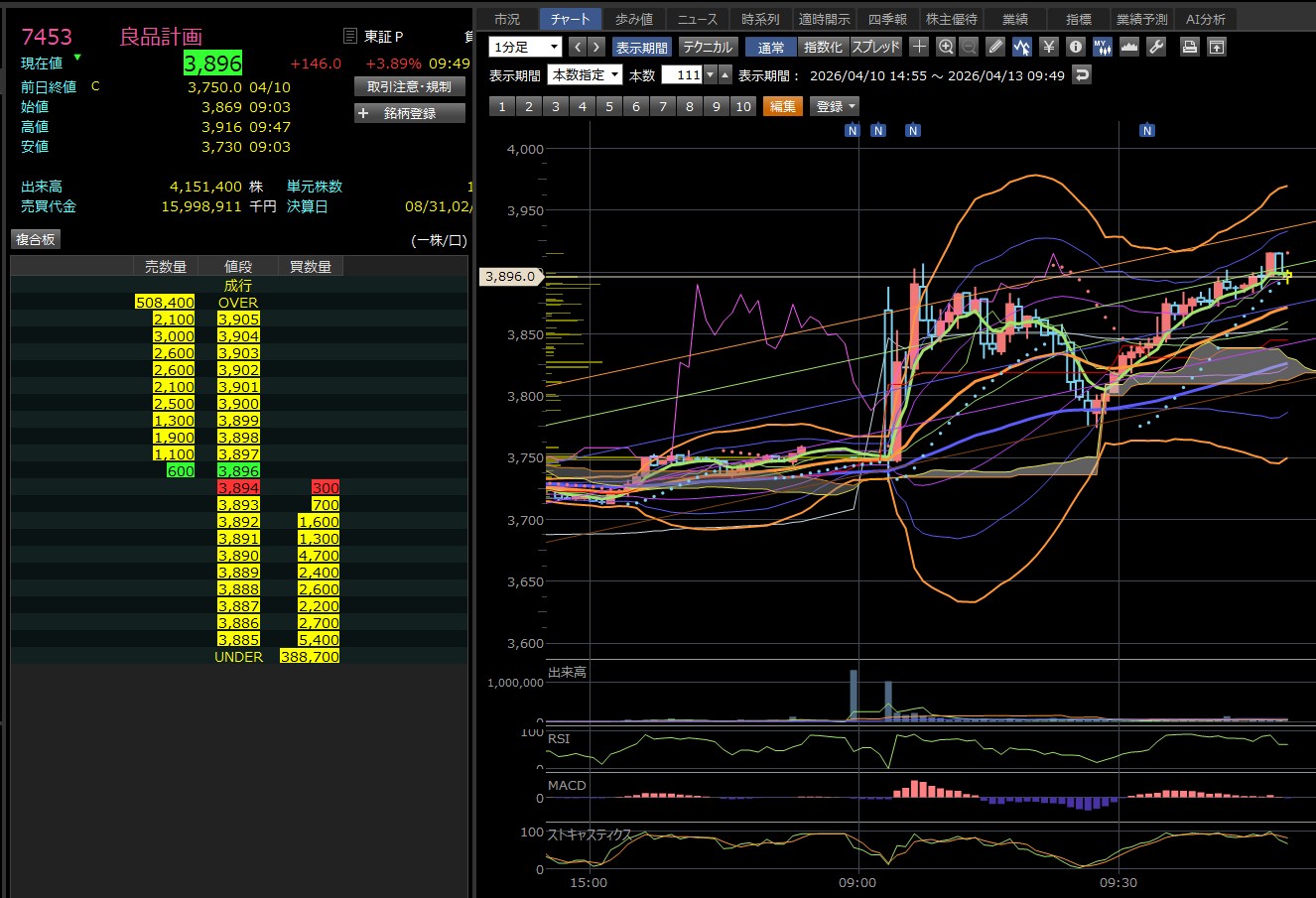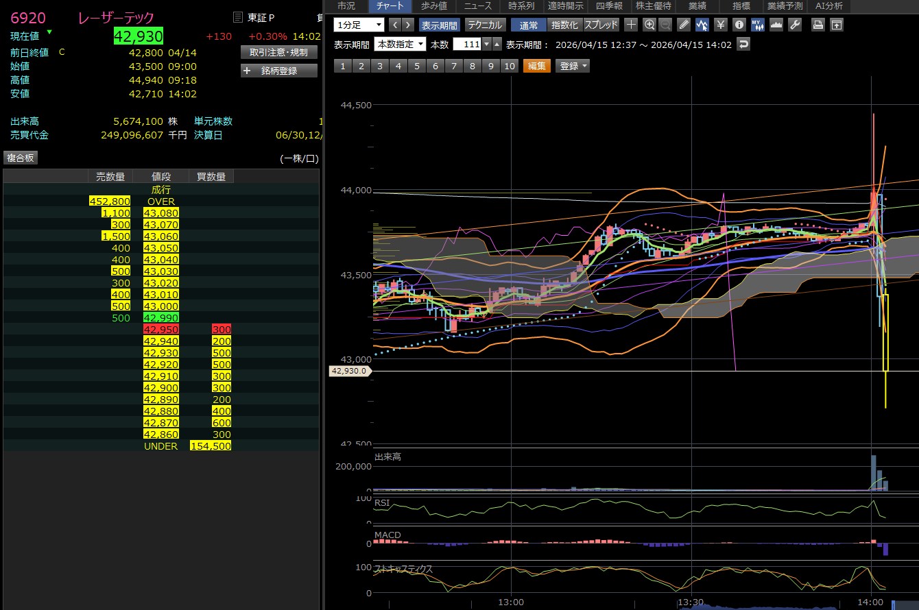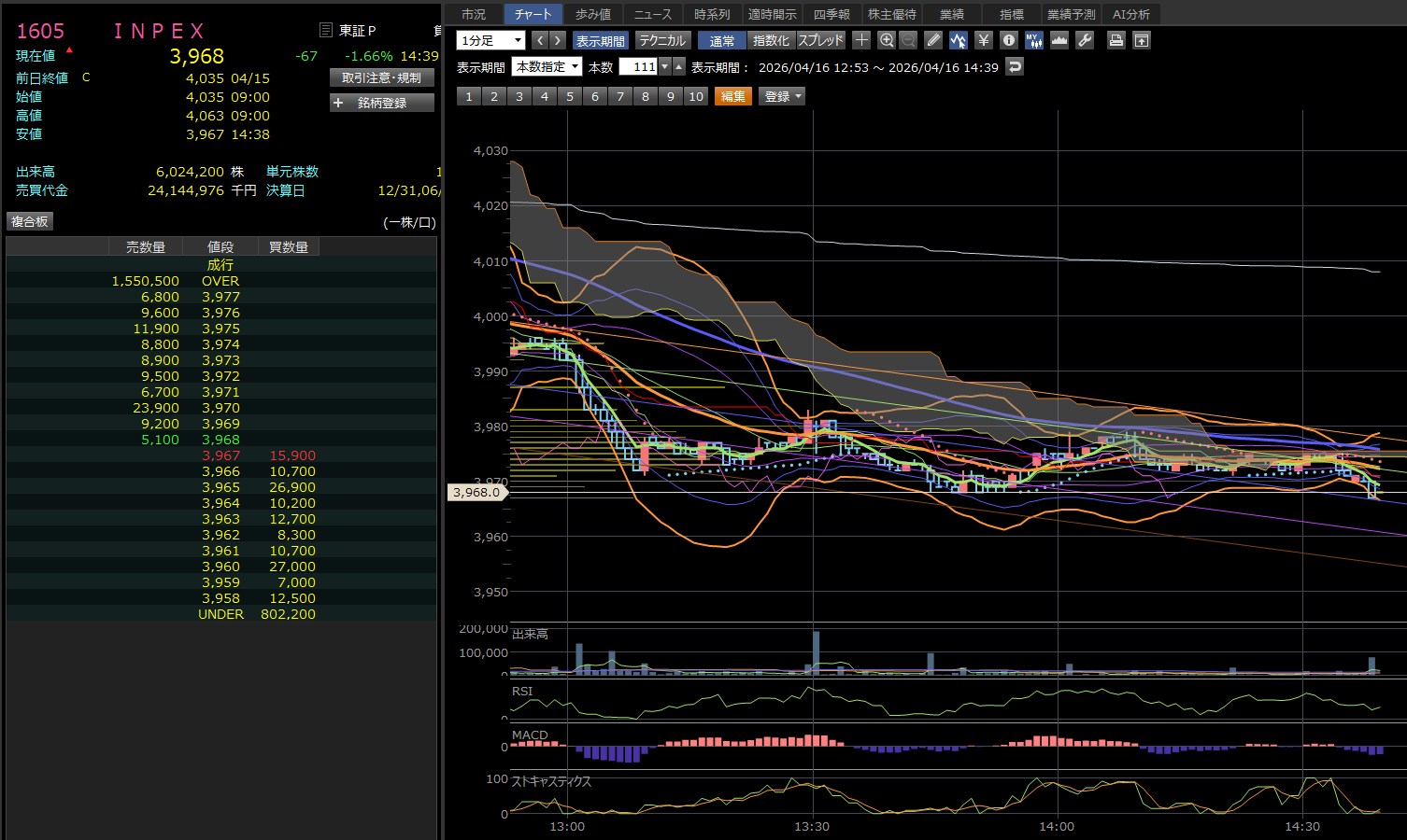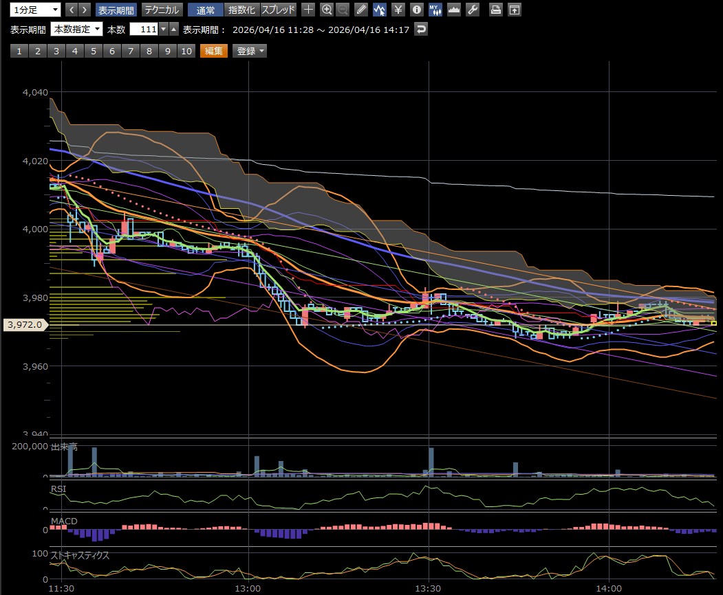 損切りの目安: 直近安値である3,968円(13:44付近)を明確に下抜けると、さらに一段安(3,950円方向)へ投げが出るリスクがあります。デイトレならここをデッドラインにするのが無難です。