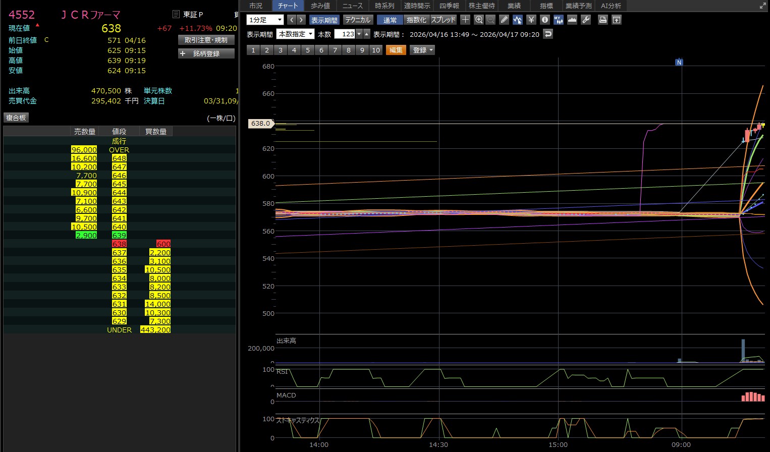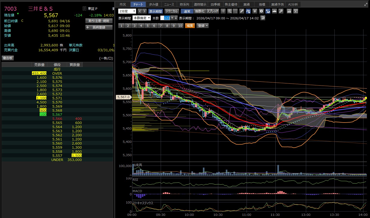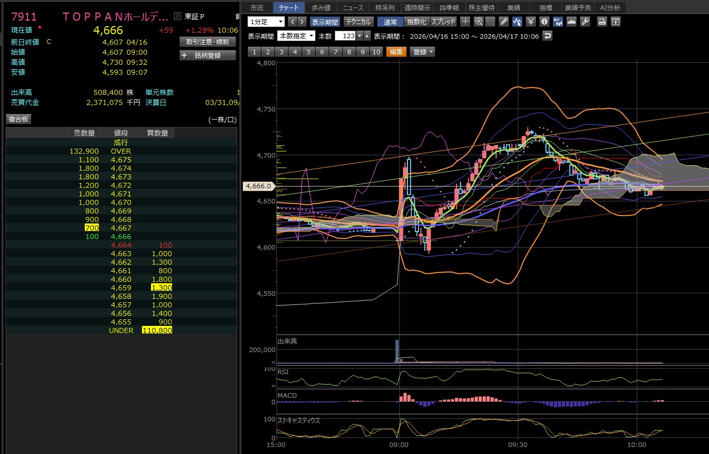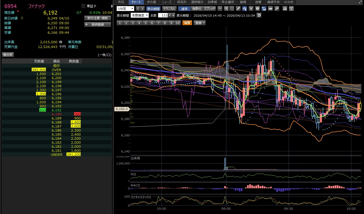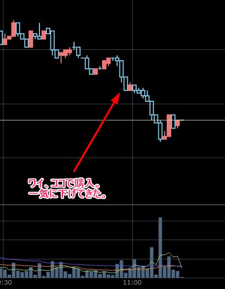 9:30あたりで迷ったんやけど、チャート見たら売りやん。ってことで諦めたんやけど、決算の場合は関係ないんかな。売りを誘ってんのか?